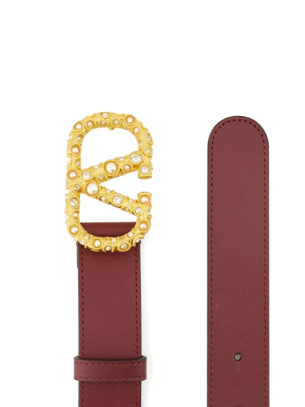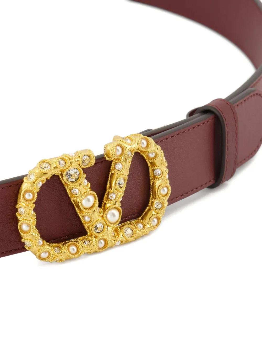 rosewood calf leather Vlogo buckle crystal embellishment gold-tone hardware