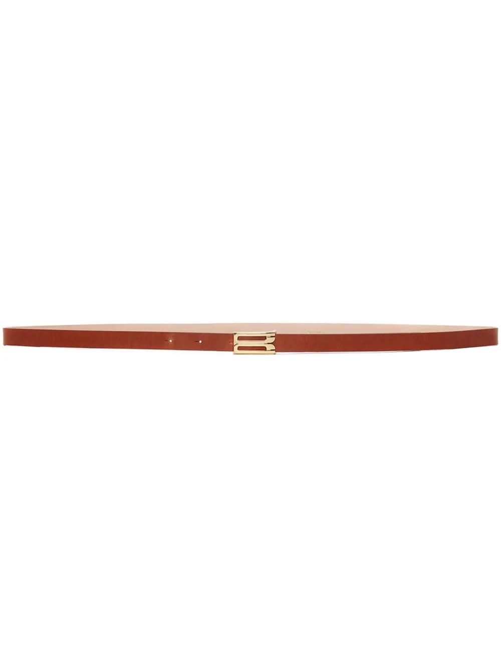 chestnut brown leather logo-buckle fastening punched holes adjustable fit
