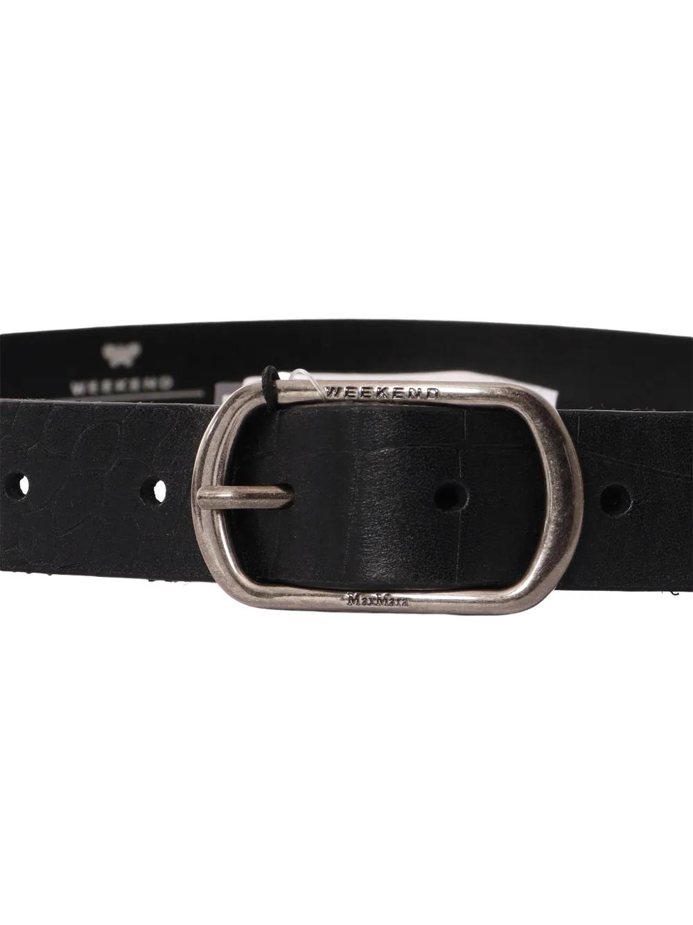 black embossed finish buckled leather keeper loop adjustable pin fastening