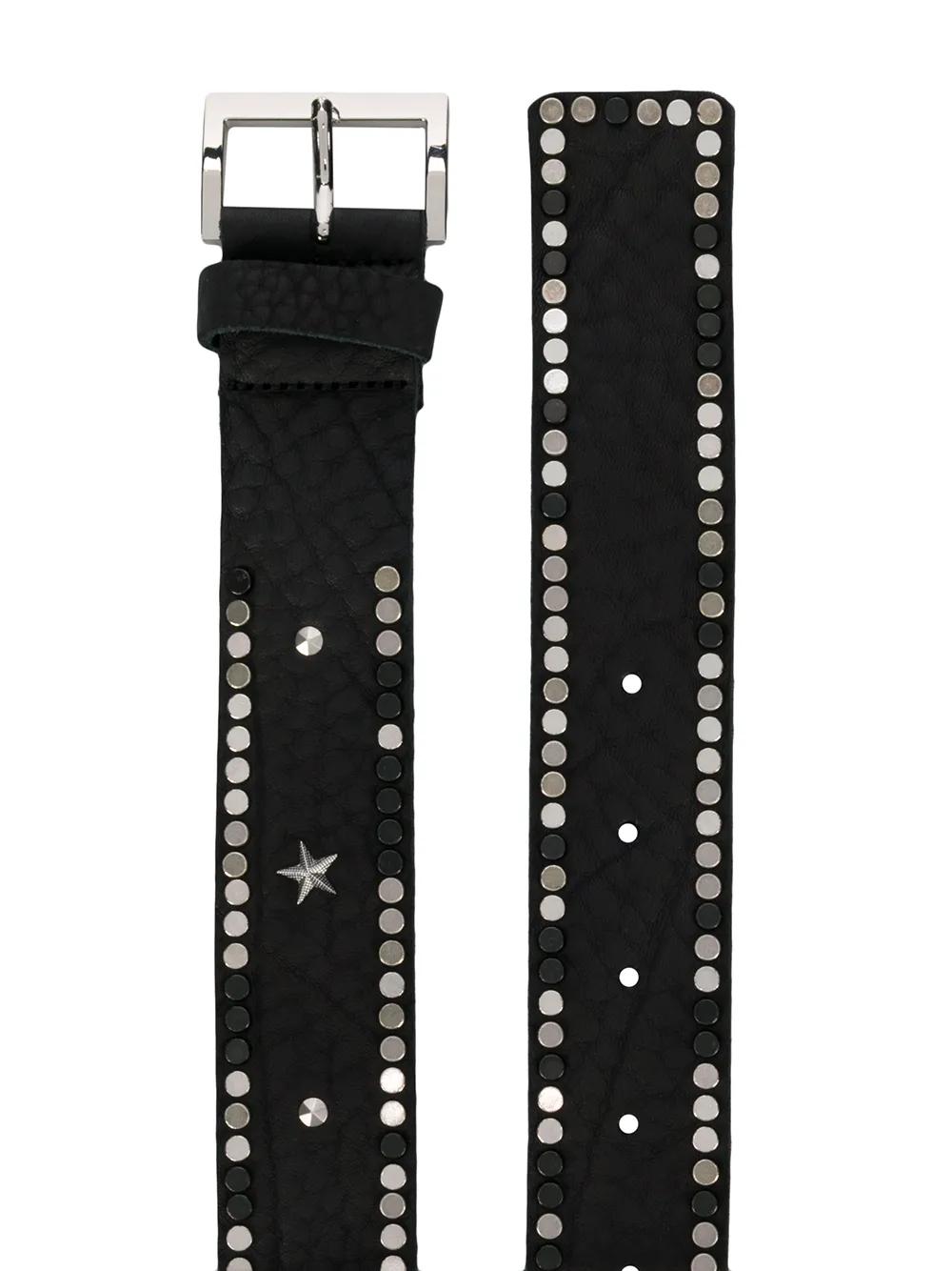 Black leather studded belt from Zadig & Voltaire featuring a buckle fastening.