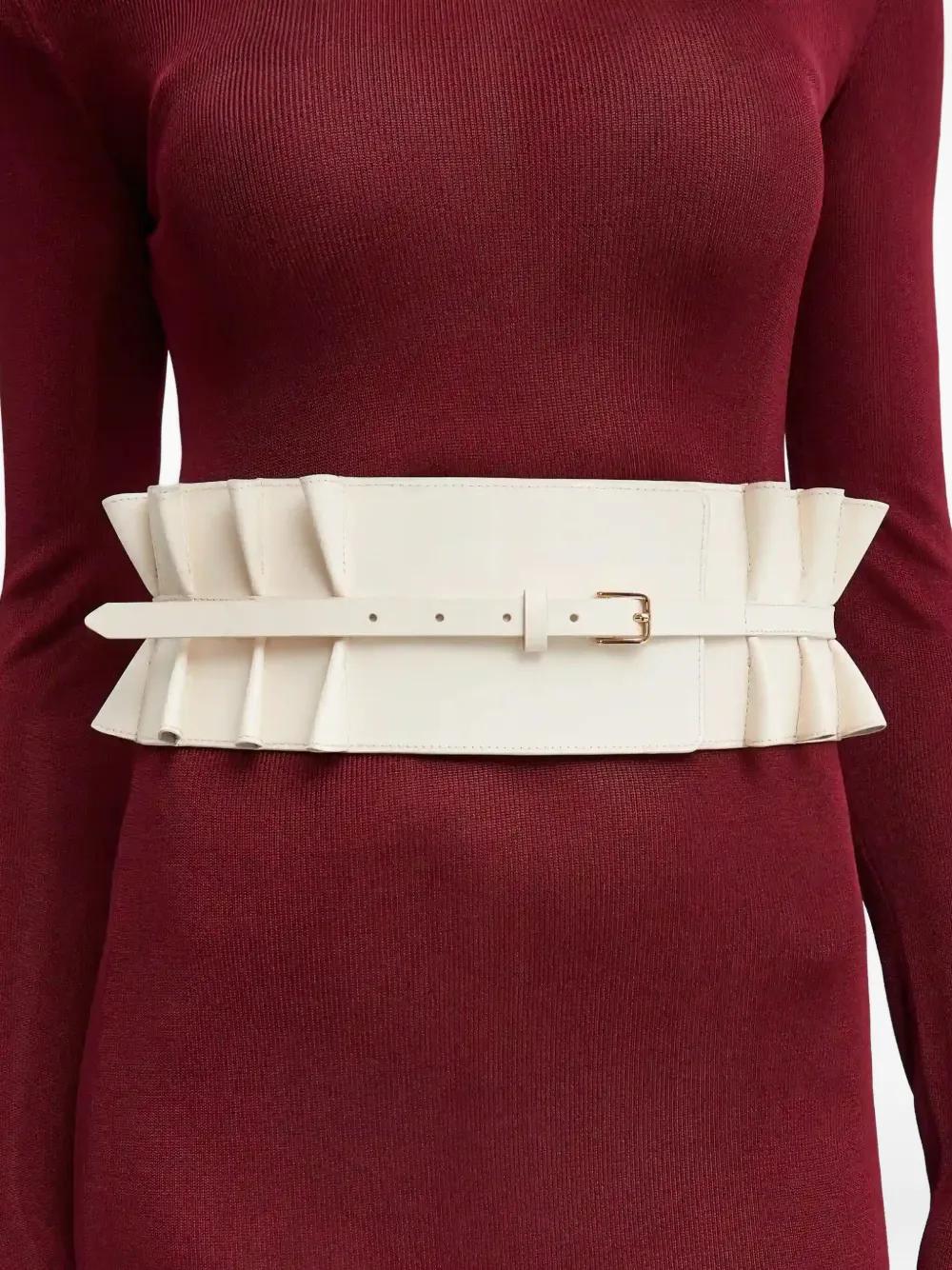 ivory gold-tone buckle ruffled detail pin-buckle fastening