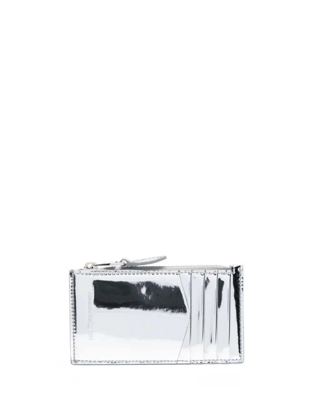 Alexander McQueen skull-embellished metallic-effect wallet - Silver