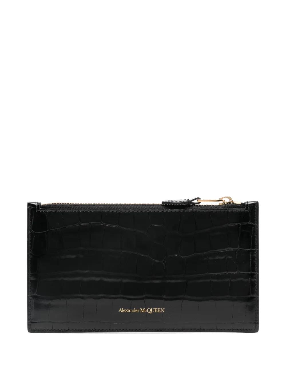 black calf leather embossed crocodile effect skull stud embellishment logo print to the rear card slots zip-fastening compartment