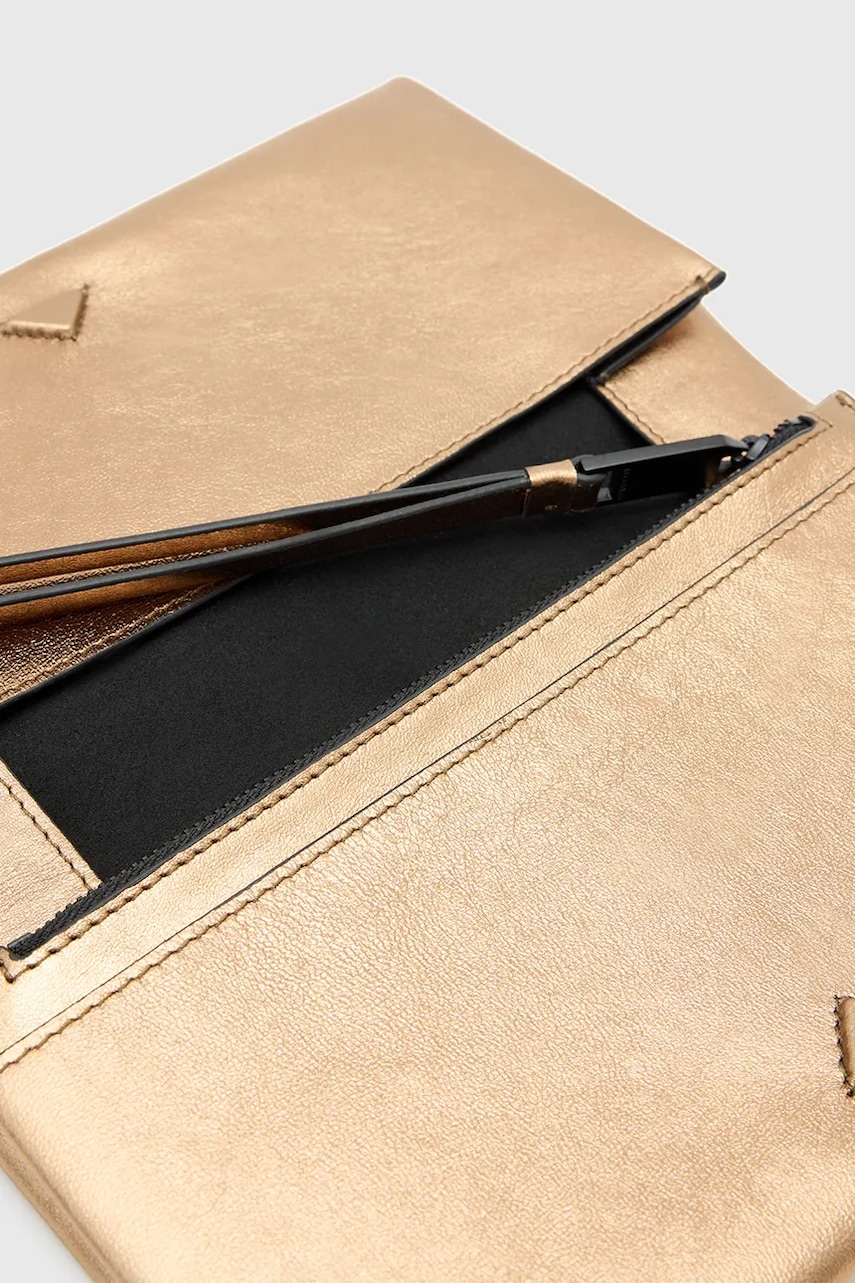 AllSaints portfel skórzany HARLUNA damski kolor złoty W208XD