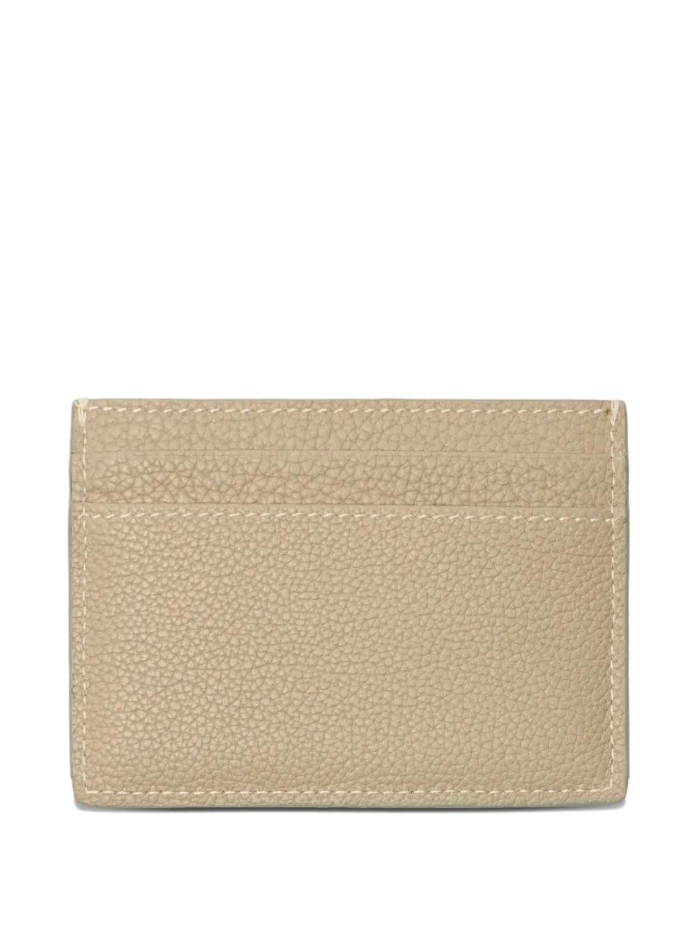 beige leather logo plaque card slots gold-tone detail