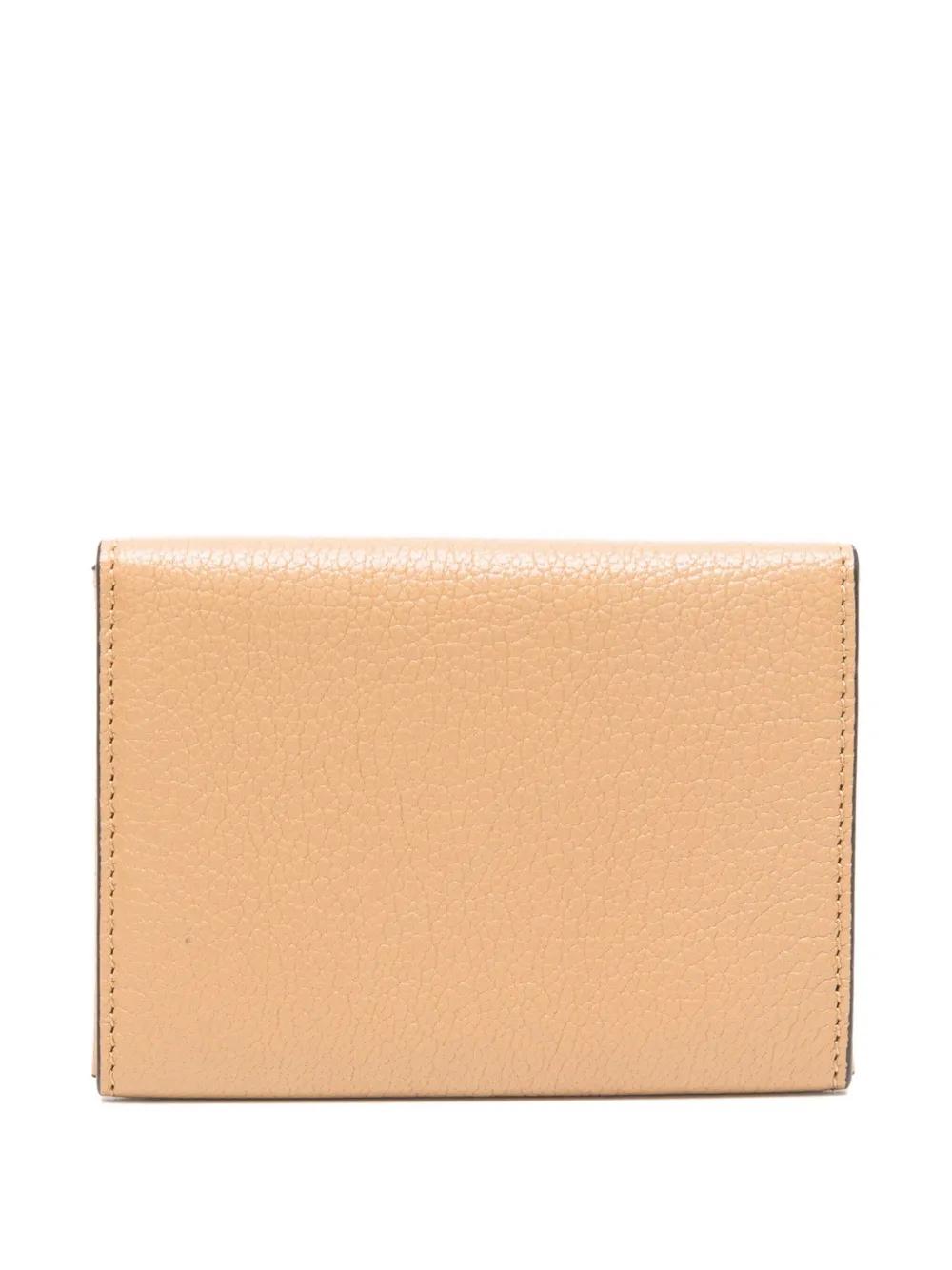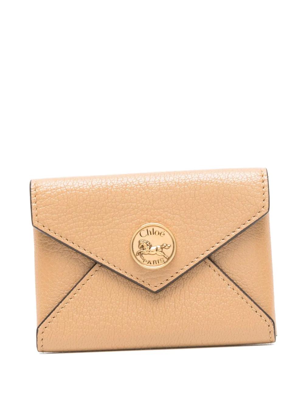 biscuit beige grainy texture gold-tone logo detail envelope style topstitch detail press-stud fastening