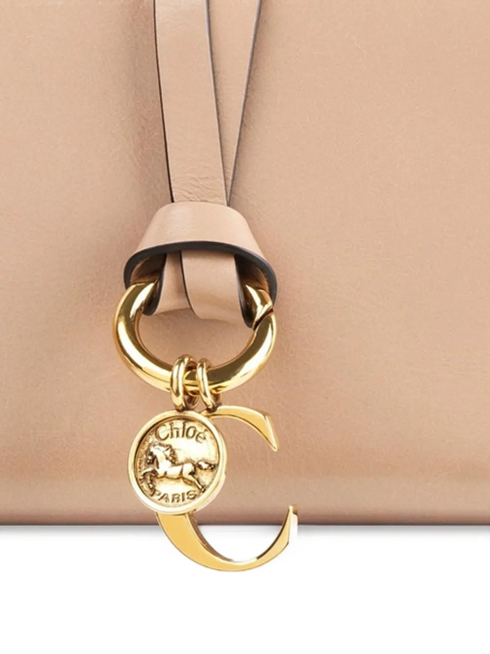 beige calf leather zip fastening C-shaped charm gold-tone hardware