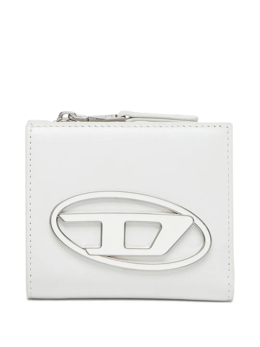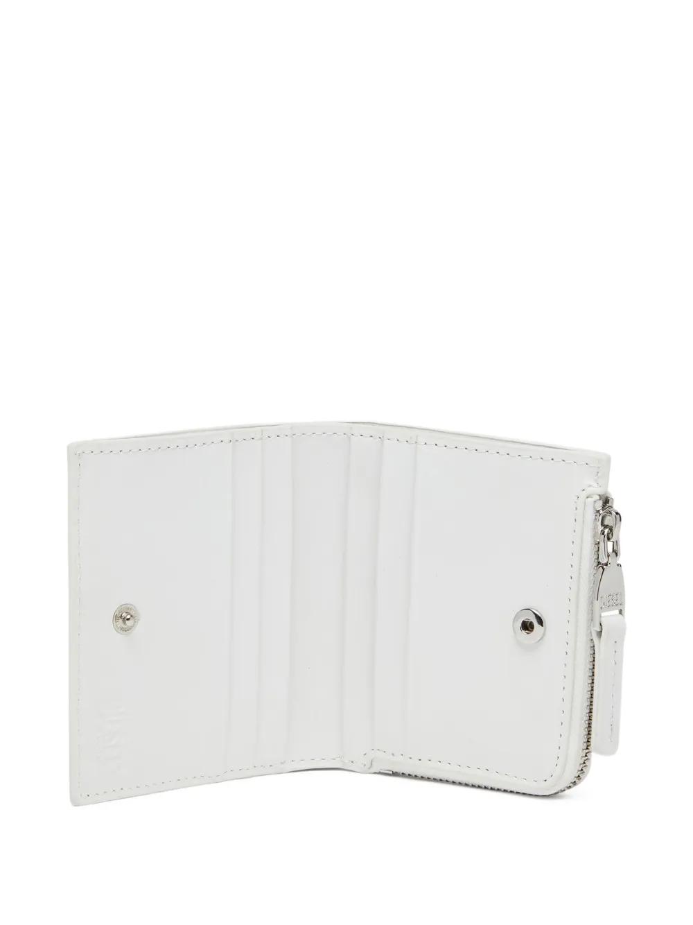 white zip fastening main compartment silver-tone hardware signature logo detail card slots