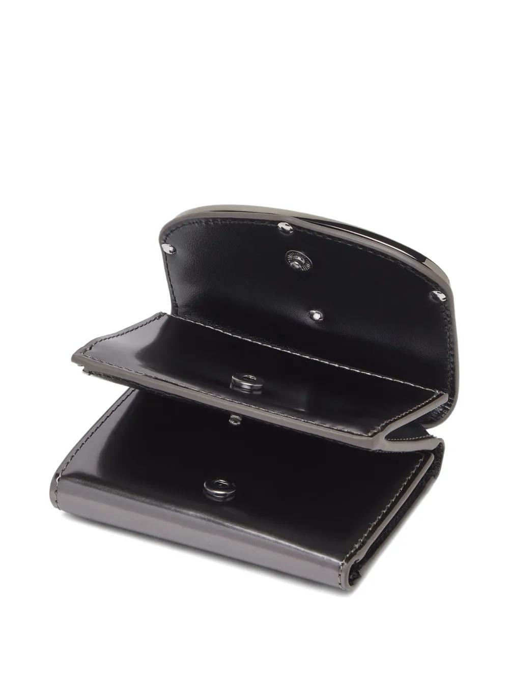 gunmetal grey mirrored leather oval D hardware tri-fold design multiple card slots coin pocket