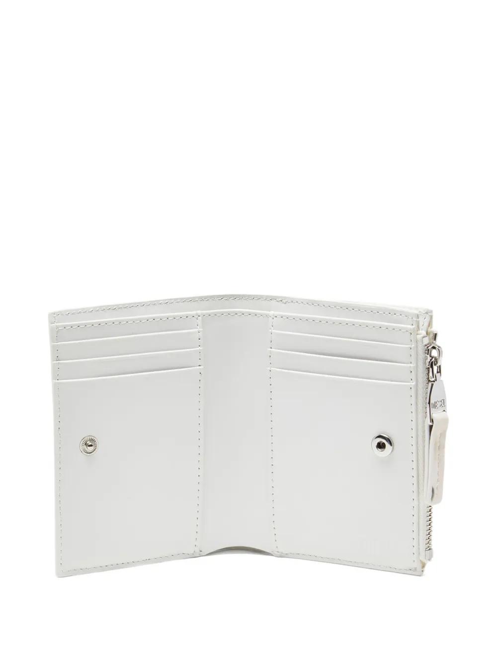 white press-stud fastening zip-fastening pocket internal card slots Oval D logo plaque