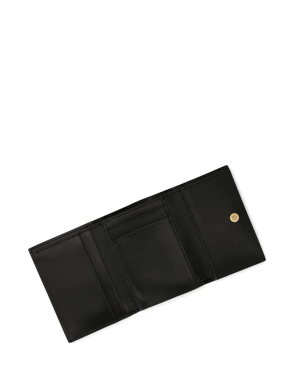 leopard-print bi-fold wallet from DOLCE & GABBANA featuring internal card slots, dark brown, calfskin, all-over leopard print, logo plaque and bi-fold design.