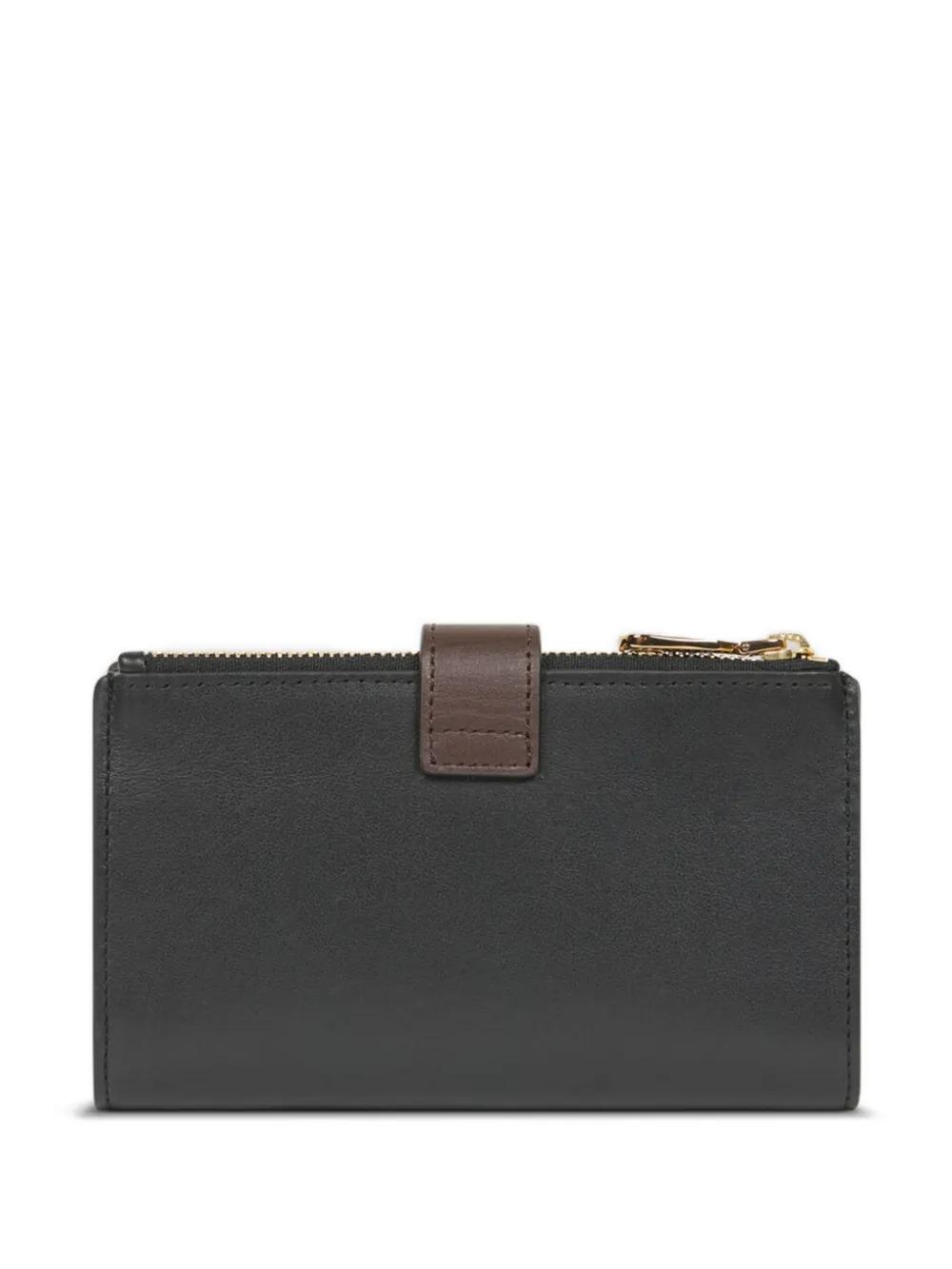 black strap and press-stud fastening zip-fastening pocket internal card slots internal note compartments