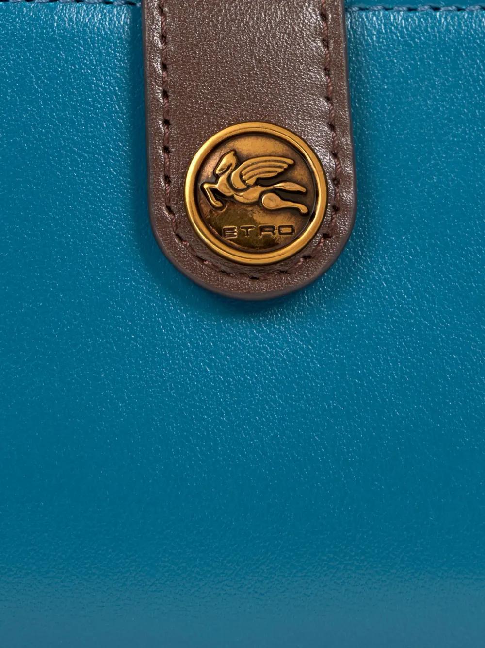 teal blue press-stud fastening internal card slots zip-fastening pocket signature Pegaso motif