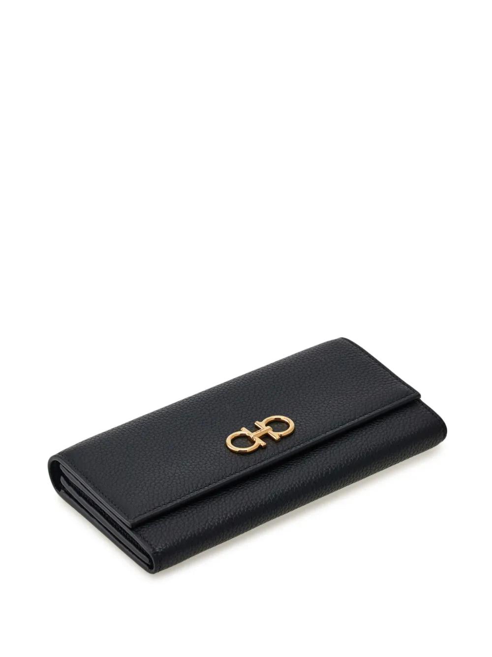 black calf leather pebbled texture Gancini plaque foldover top with press-stud fastening detachable chain-link shoulder strap internal logo stamp partitioned compartment internal zip-fastening pocket internal card slots