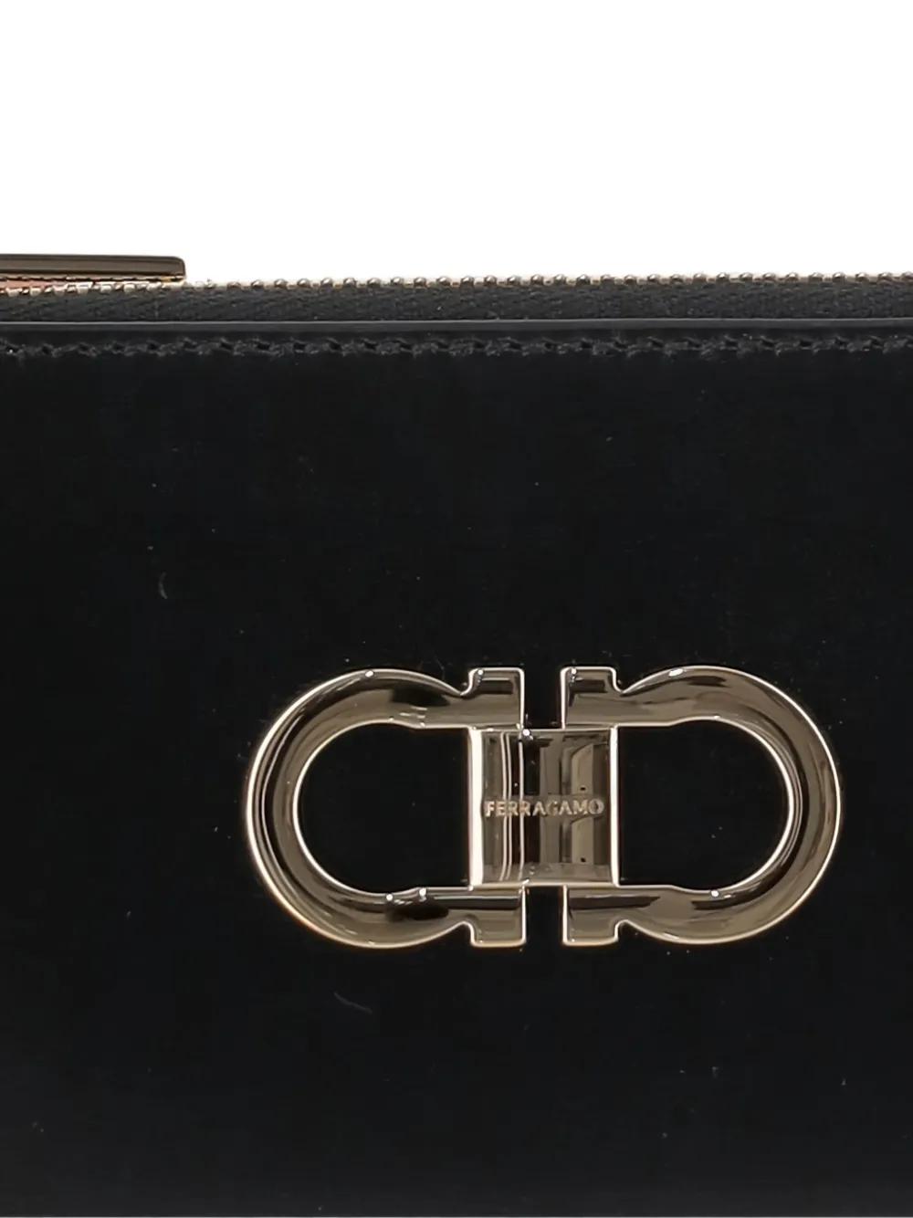 black calf leather Gancini detail zip fastening card slots smooth finish