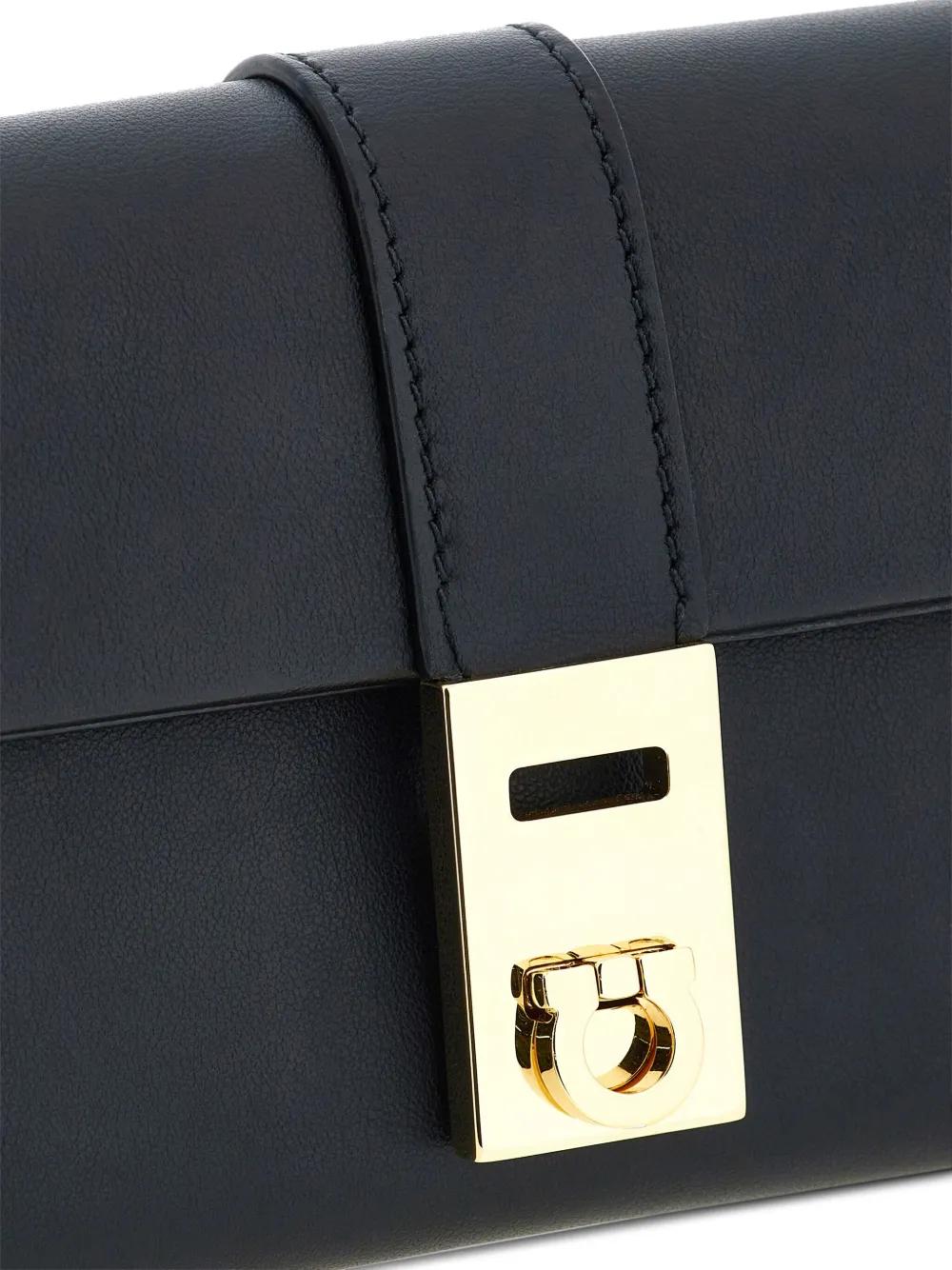 black calf leather Gancini flip-lock fastening detachable wallet chain foldover top partitioned compartment internal zip-fastening pocket gold-tone hardware