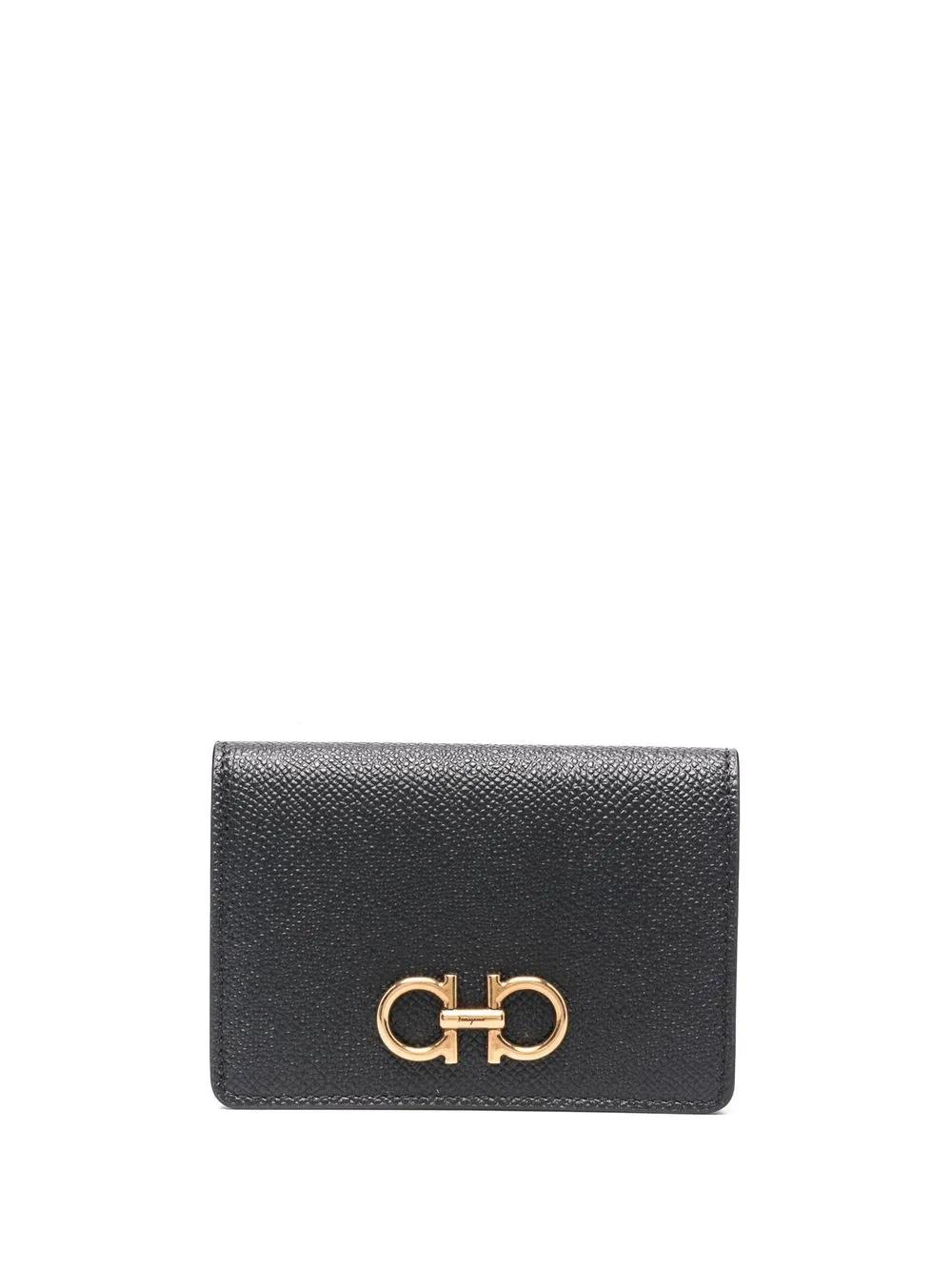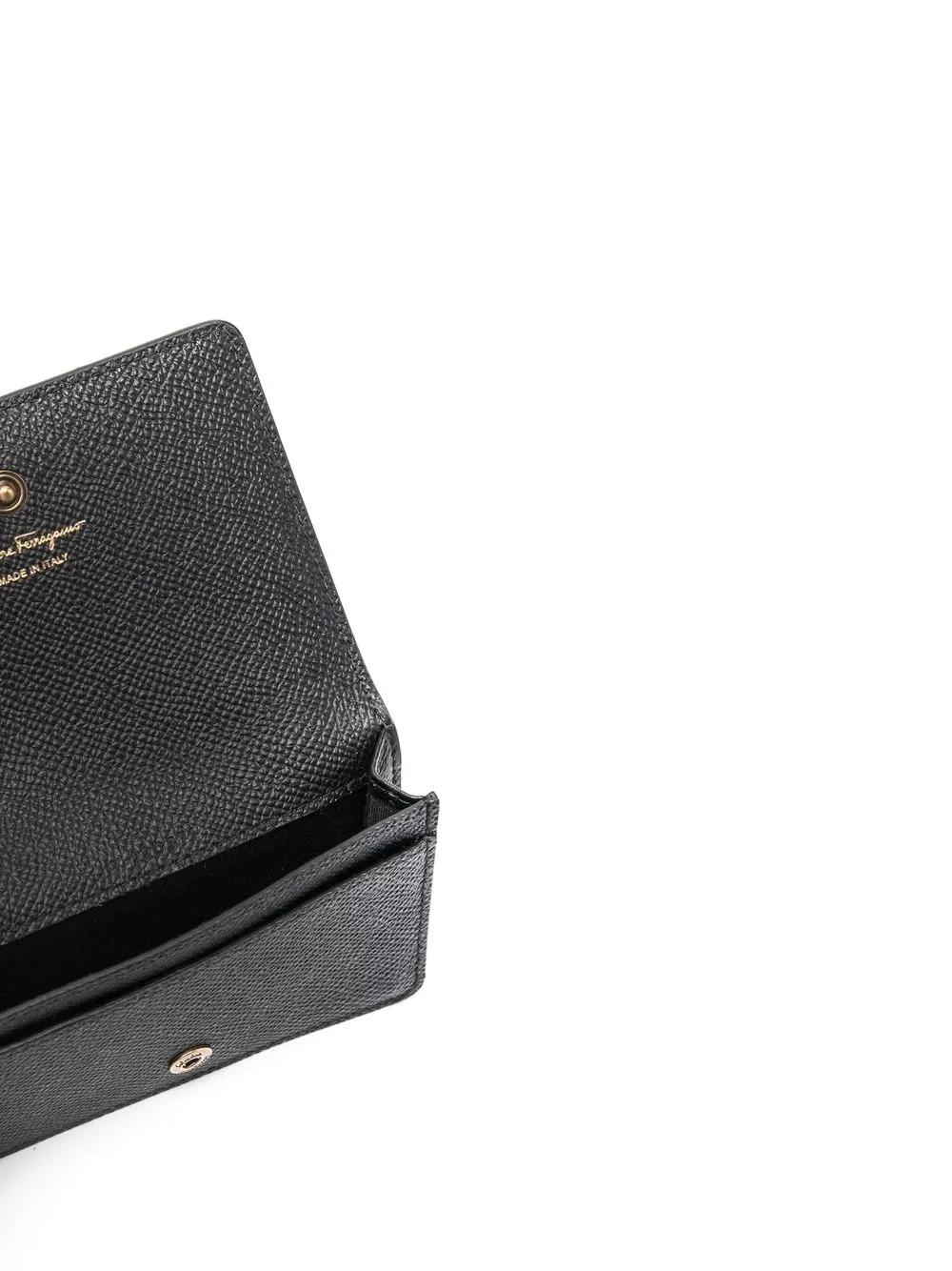 black/gold leather gold-tone logo plaque front flap closure main compartment