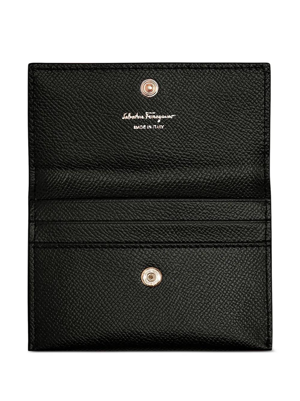 jet black calf leather grained texture foldover top with press-stud fastening internal card slots internal logo stamp