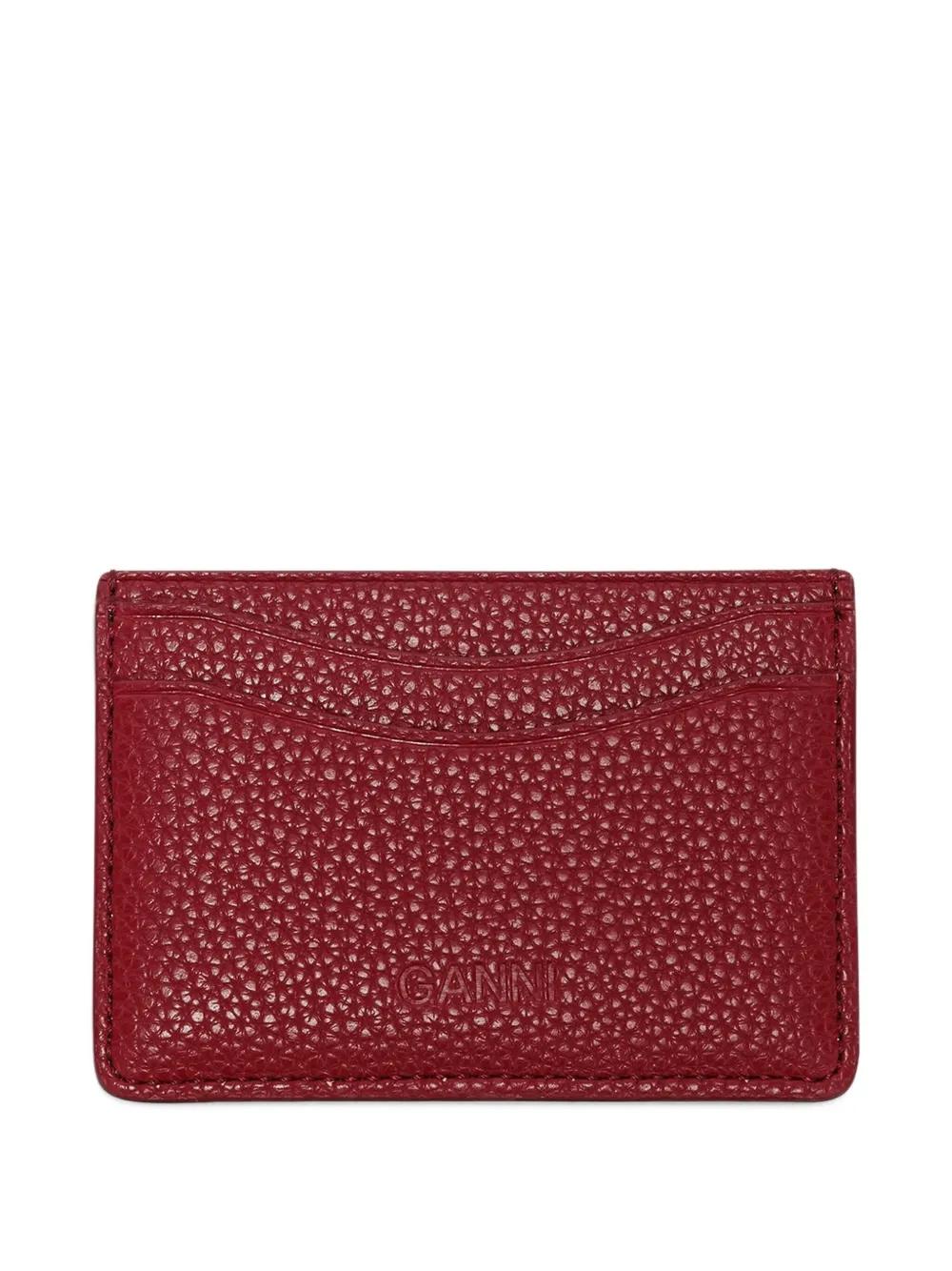 silver calf leather grained texture zip-fastening case four card slots flat central pocket zip-fastening pocket embossed logo to the front embossed logo to the rear