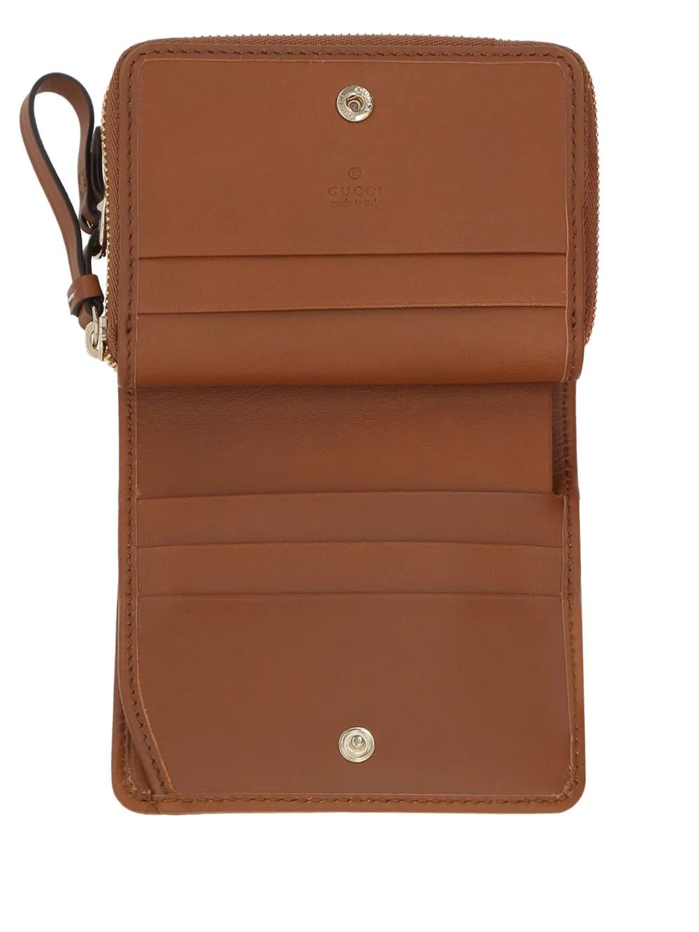 beige GG-monogram pattern zip-around fastening leather trim external zip coin pocket snap button closure