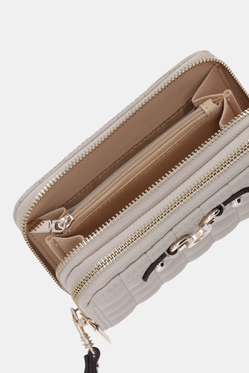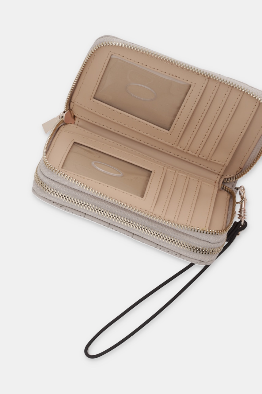 - Zawiera plastik pochodzący z recyklingu. - Zapięcie na suwak. - Przegrody na karty. - Kieszeń na bilon zapinana na zamek. - Przegroda na banknoty. - Odpinany uchwyt. - Model zapakowany w pudełko firmowe. - Liczba przegródek na karty: 12. - Wymiary: 15 x 9 cm.