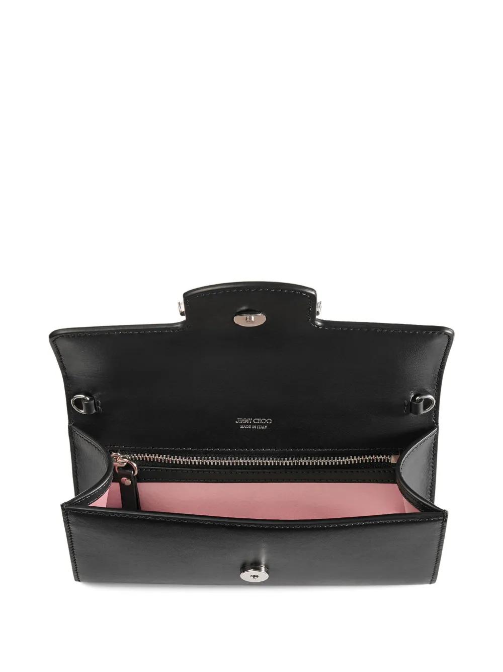 black crystal detailing to front chain shoulder strap magnetic closure internal card slots