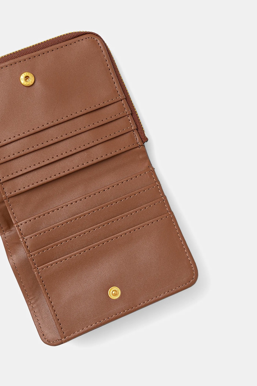 - Zapięcie na zatrzask. - Kieszeń na bilon zapinana na zamek. - Liczba przegródek na karty: 8. - Przegroda na banknoty. - Model zapakowany w pudełko firmowe. - Wymiary: 9,5 x 11,5 cm.