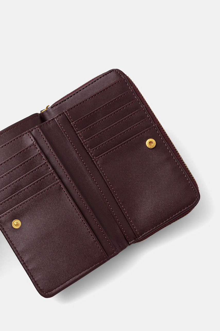 - Zapięcie na zatrzask. - Dwie kieszenie na bilon zapinane na suwak. - Liczba przegródek na karty: 10. - Wymiary: 16 x 10 x 3 cm.