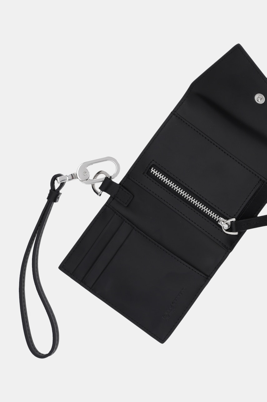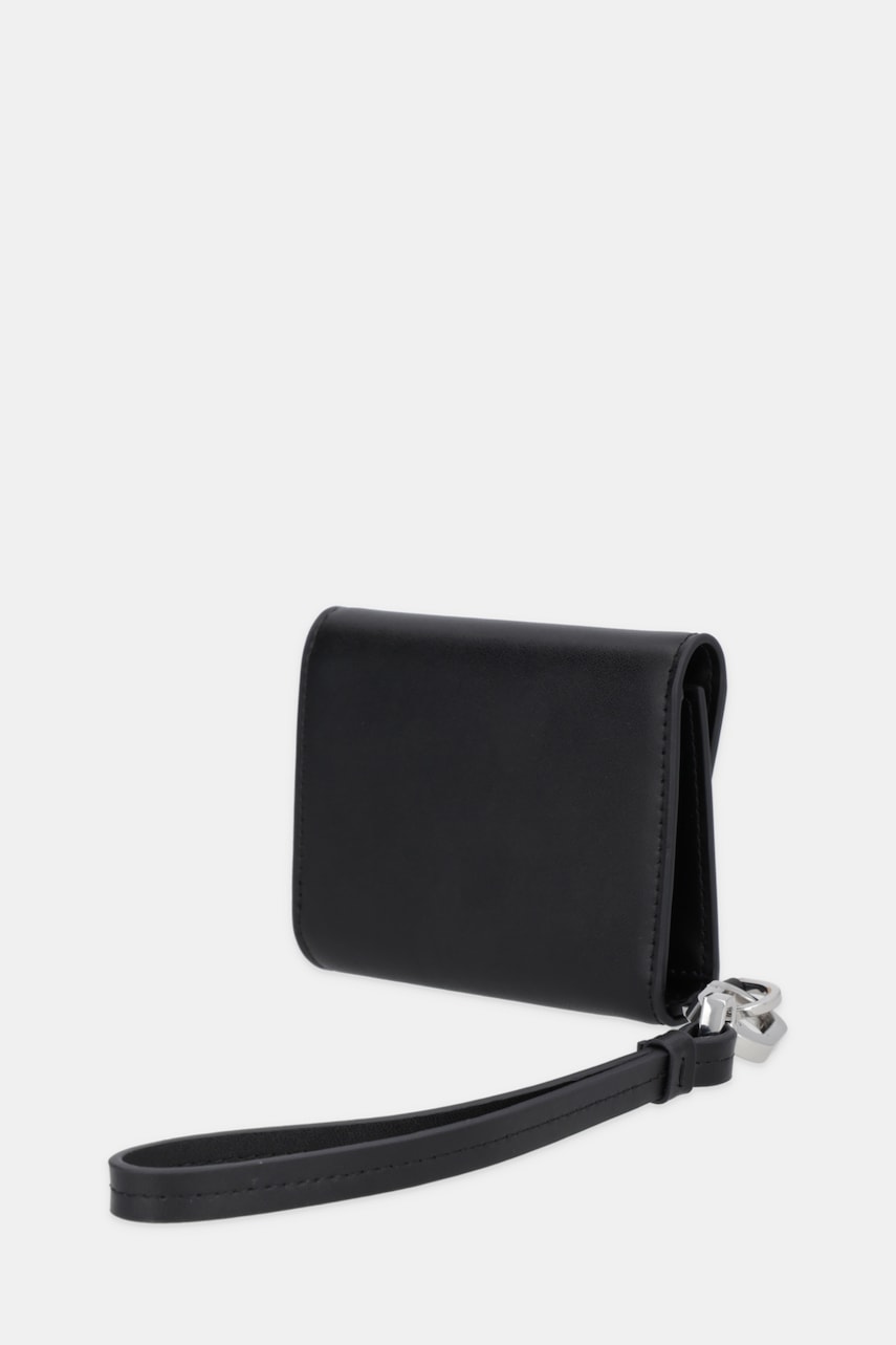 - Zapięcie na zatrzask. - Kieszeń na bilon zapinana na zamek. - Brak przegrody na banknoty. - Przegrody na karty. - Odpinany, krótki uchwyt dla komfortowego noszenia w dłoni. - Liczba przegródek na karty: 5. - Wymiary: 11 x 8,5 cm.
