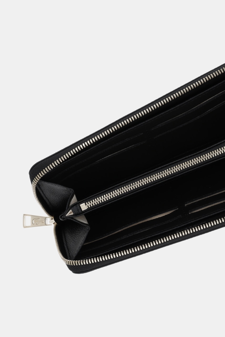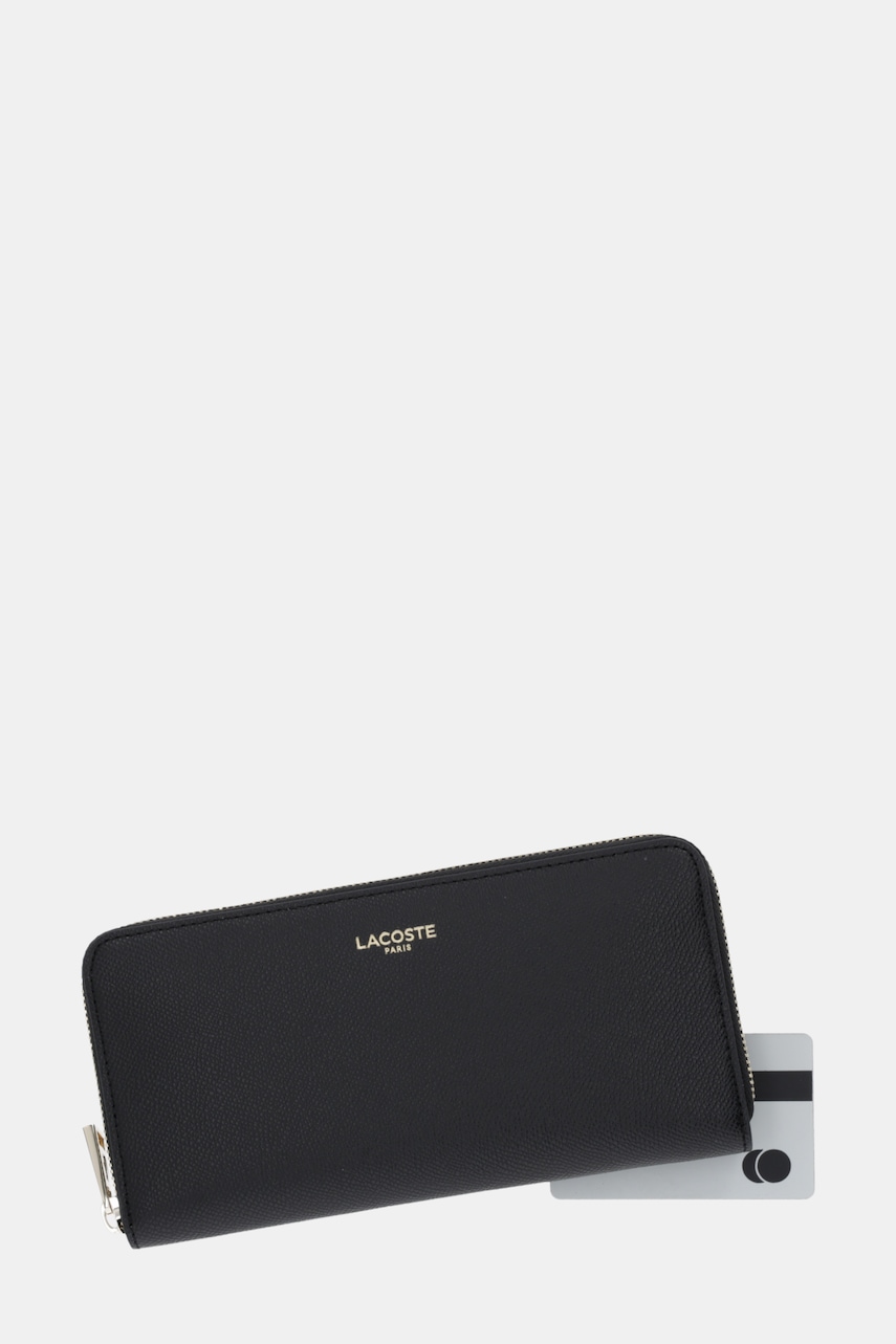 - "Shape a More Elegant World" to inicjatywa marki Lacoste, która łączy modę z ekologiczną odpowiedzialnością. Promuje zrównoważony styl życia i dbałość o środowisko, zachęcając do podejmowania świadomych wyborów. - Wykorzystanie odpowiedniego materiału zapewnia ochronę przed technologią RFID, wykorzystującą fale radiowe do odczytywania danych na odległość. Zapewnia to bezpieczeństwo informacji przechowywanych na przewożonych nośnikach takich jak karty bankowe lub paszport. - Zapięcie na suwak. - Kieszeń na bilon zapinana na zamek. - Wewnętrzne przegrody na karty. - Przegrody na banknoty. - Model z podszewką. - Liczba przegródek na karty: 8. - Liczba przegródek na banknoty: 2. - Wymiary: 20,5 cm x 10,5 cm.