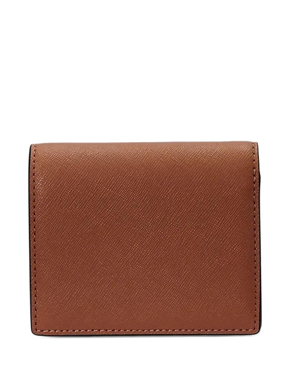 brown gold-tone logo plaque multiple card slots compact design