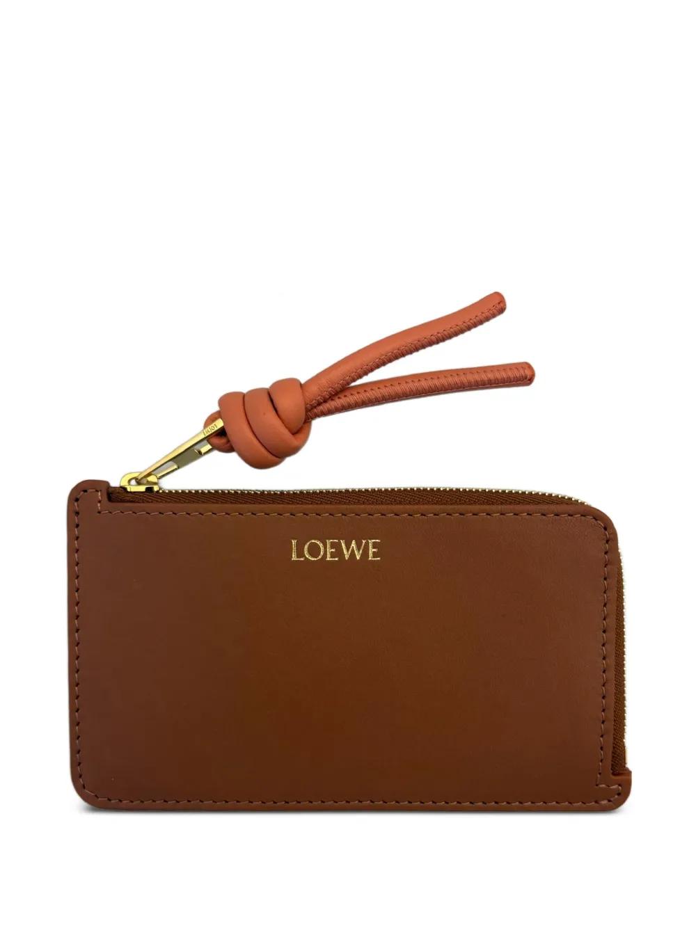 brown calf leather zip closure knot detail gold-tone hardware logo lettering