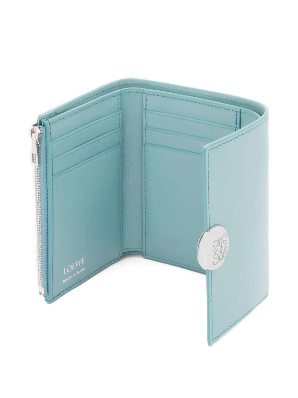 light blue silver-tone hardware press-stud fastening zip coin pouch card slots