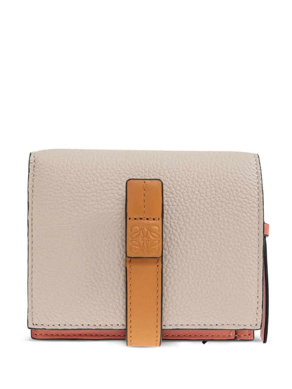 light grey leather embossed Anagram logo strap detail side zip fastening