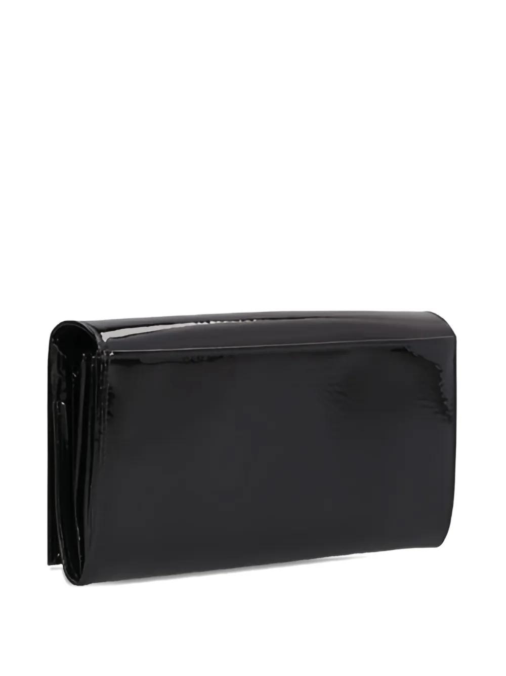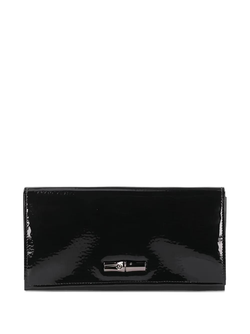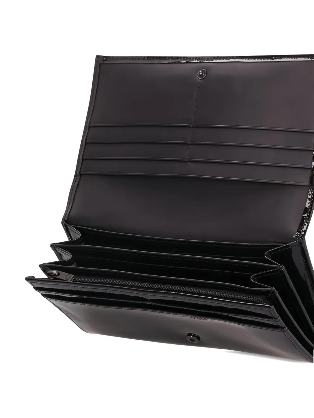 black patent finish silver-tone hardware press-stud fastening internal card slots internal zip-fastening pocket