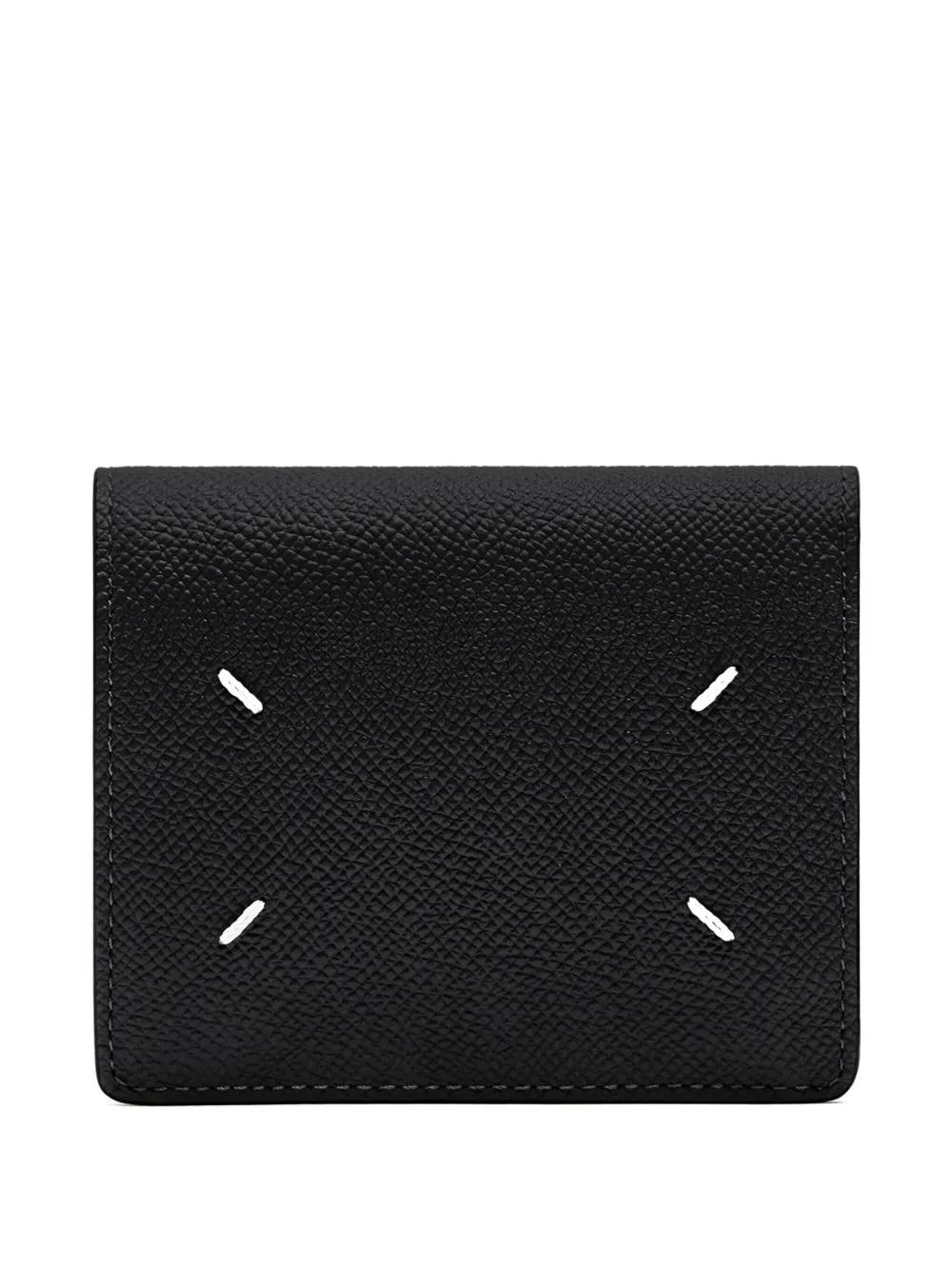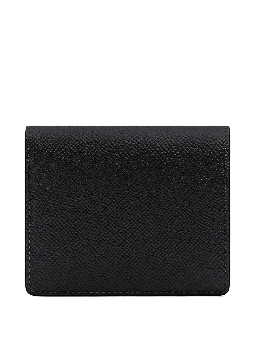 black grained texture press-stud fastening internal coin pocket internal card slots signature four-stitch detail