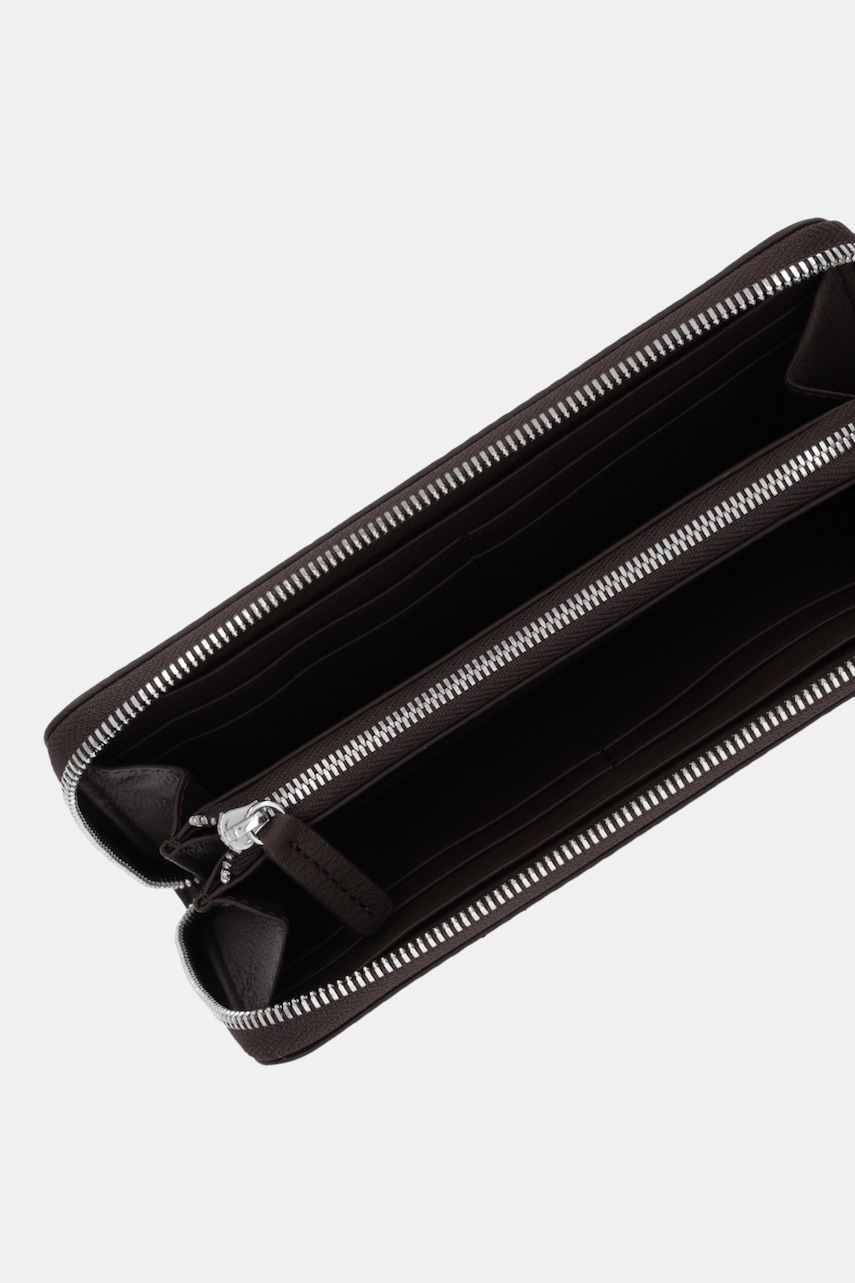 - Produkt wyprodukowany zgodnie z założeniami Fair Wear Foundation, organizacji zrzeszającej marki odzieżowe tworzące produkty w bardziej zrównoważony i etyczny sposób. Produkty oznaczone znakiem Fair Wear powstały w fabrykach, które pozytywnie przeszły zewnętrzny audyt i zapewniają pracownikom odpowiednie warunki pracy oraz wynagrodzenie. - Model wyprodukowany zgodnie z założeniami organu Leather Working Group, który wydaje garbarniom certyfikaty na drodze rygorystycznych audytów. Celem tych działań jest ograniczenie zużycia energii i wody potrzebnej do garbowania skóry, a także wyeliminowanie zanieczyszczenia ściekami. - Zapięcie na suwak. - Kieszeń na bilon zapinana na zamek. - Przegrody na banknoty. - Wewnętrzne przegrody na karty. - Liczba przegródek na karty: 8. - Model zapakowany w pudełko firmowe. - Wymiary: 9,5 x 19,5 cm.