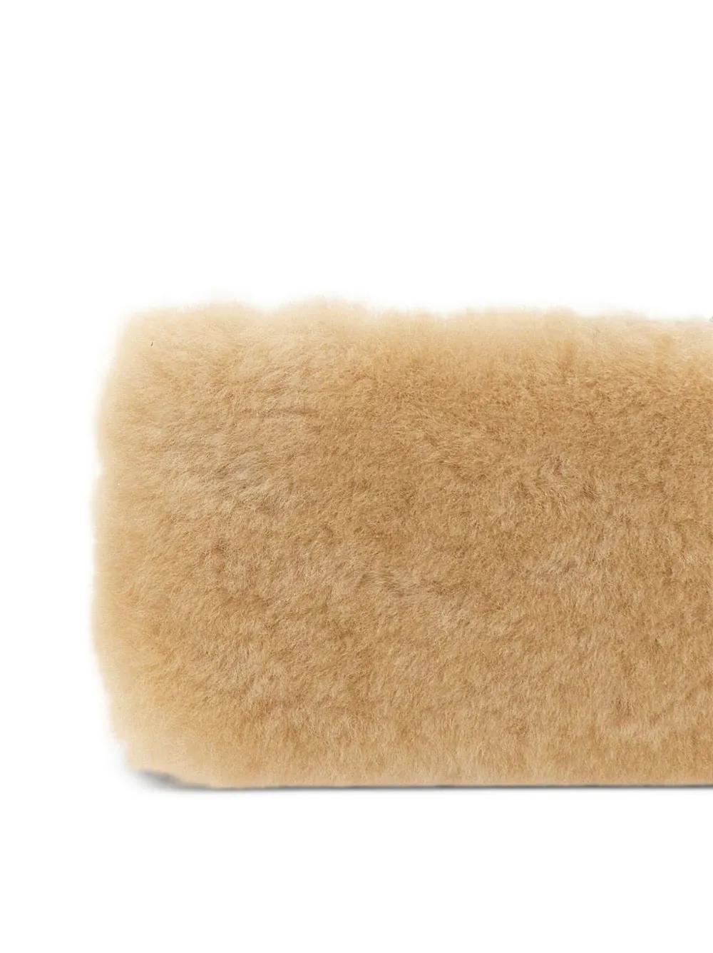 beige lamb fur metal heart logo zip closure