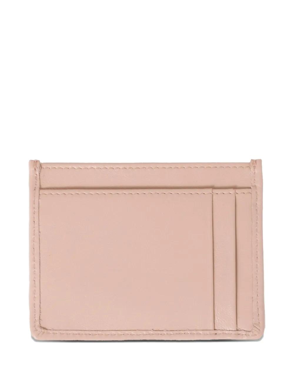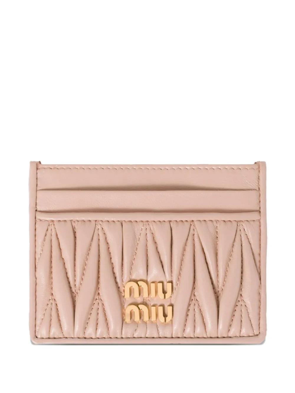 light pink Matelassé effect leather gold-tone logo lettering card slots rectangular shape