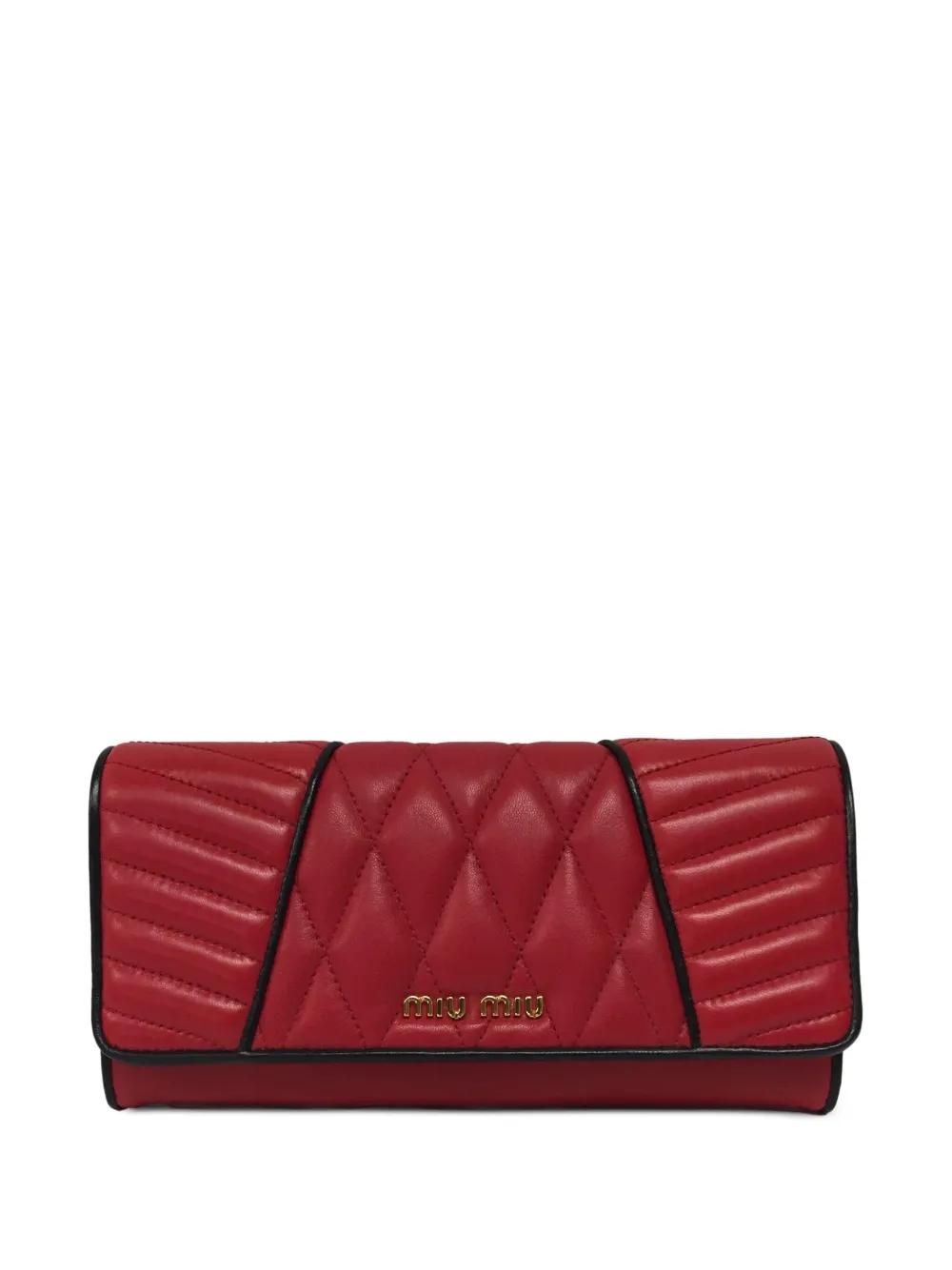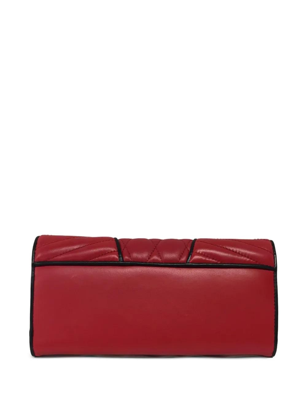 dark garnet red leather logo detail exterior zip pocket snap fastening multiple internal card slots