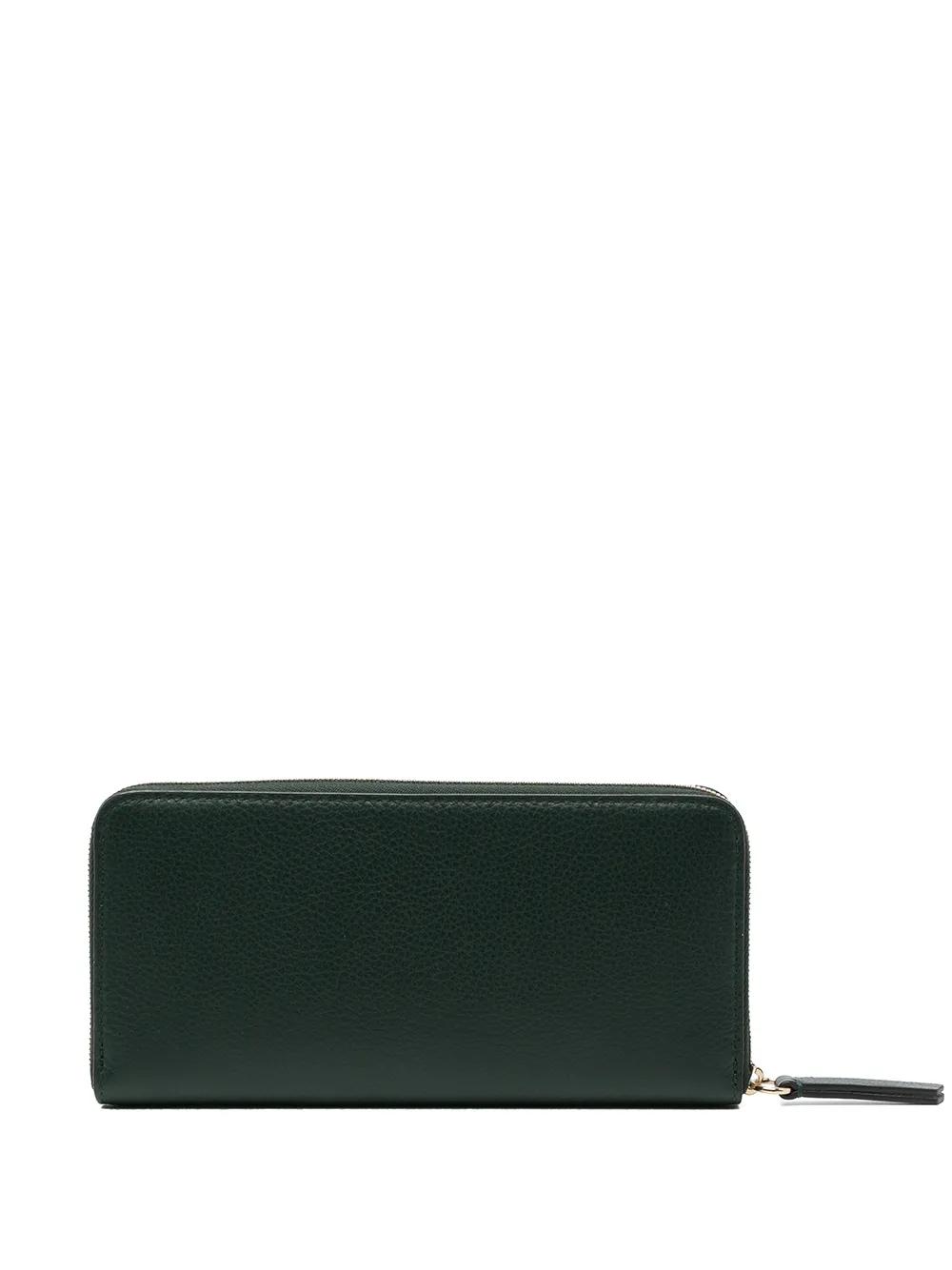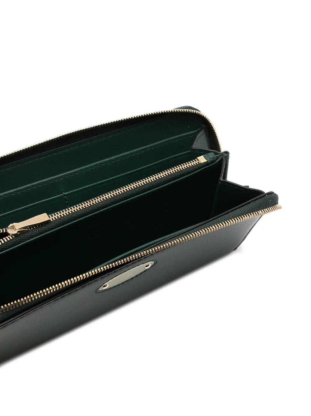 green leather all-around zip fastening gold-tone logo plaque internal card slots internal zip pocket