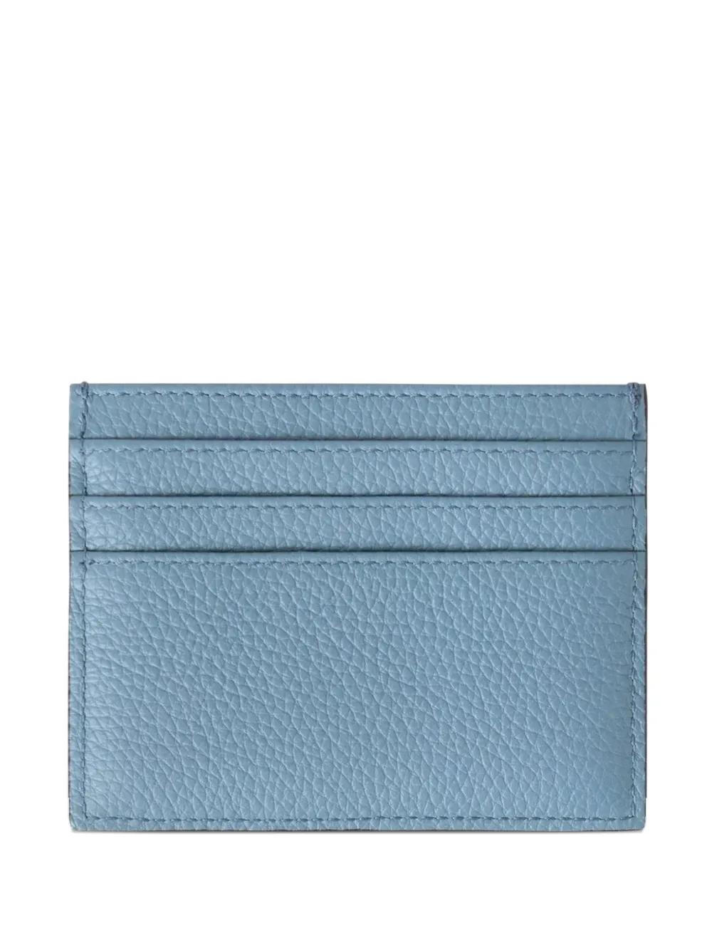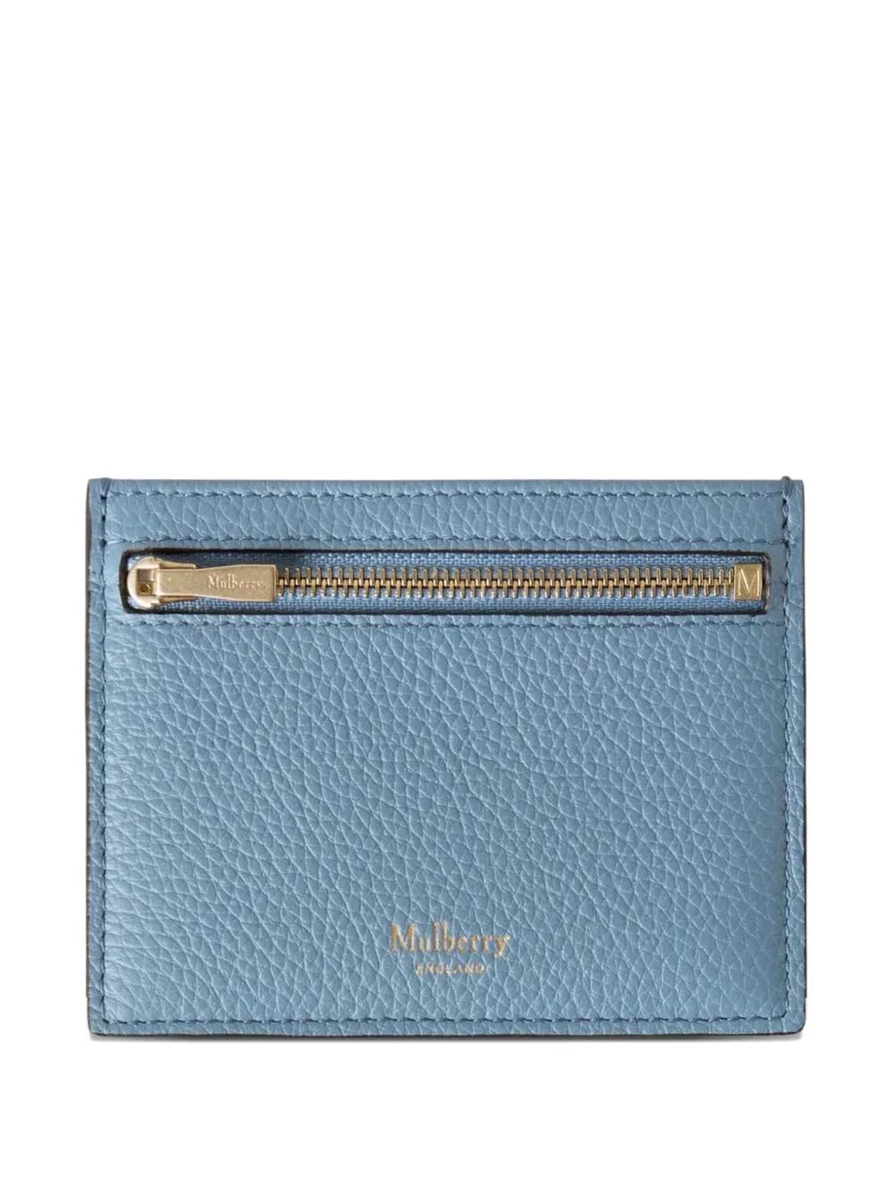 sky blue leather zip fastening card slots embossed logo gold-tone hardware