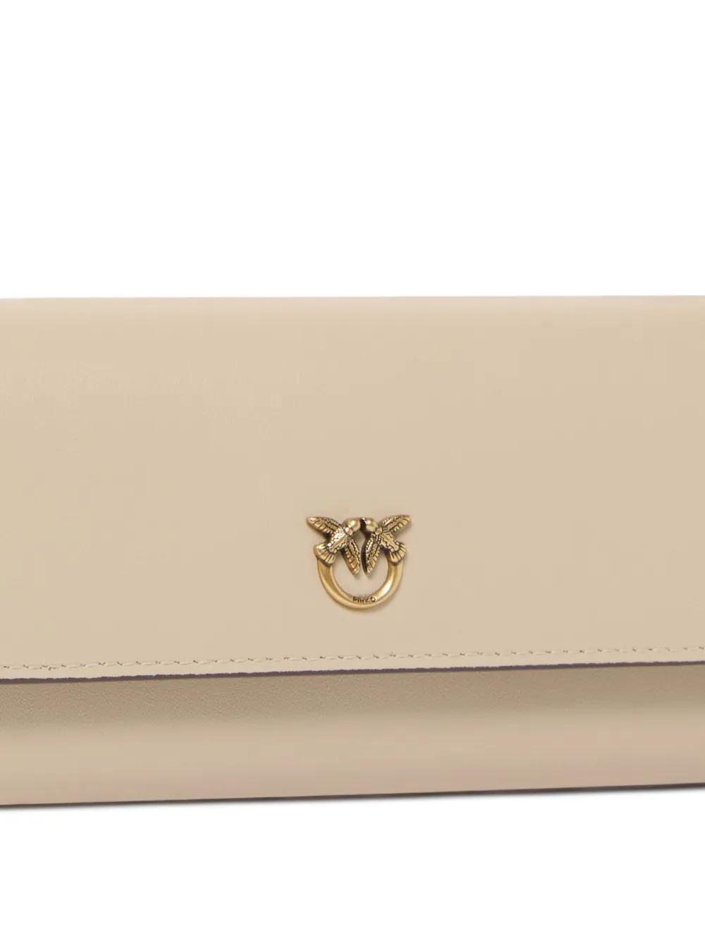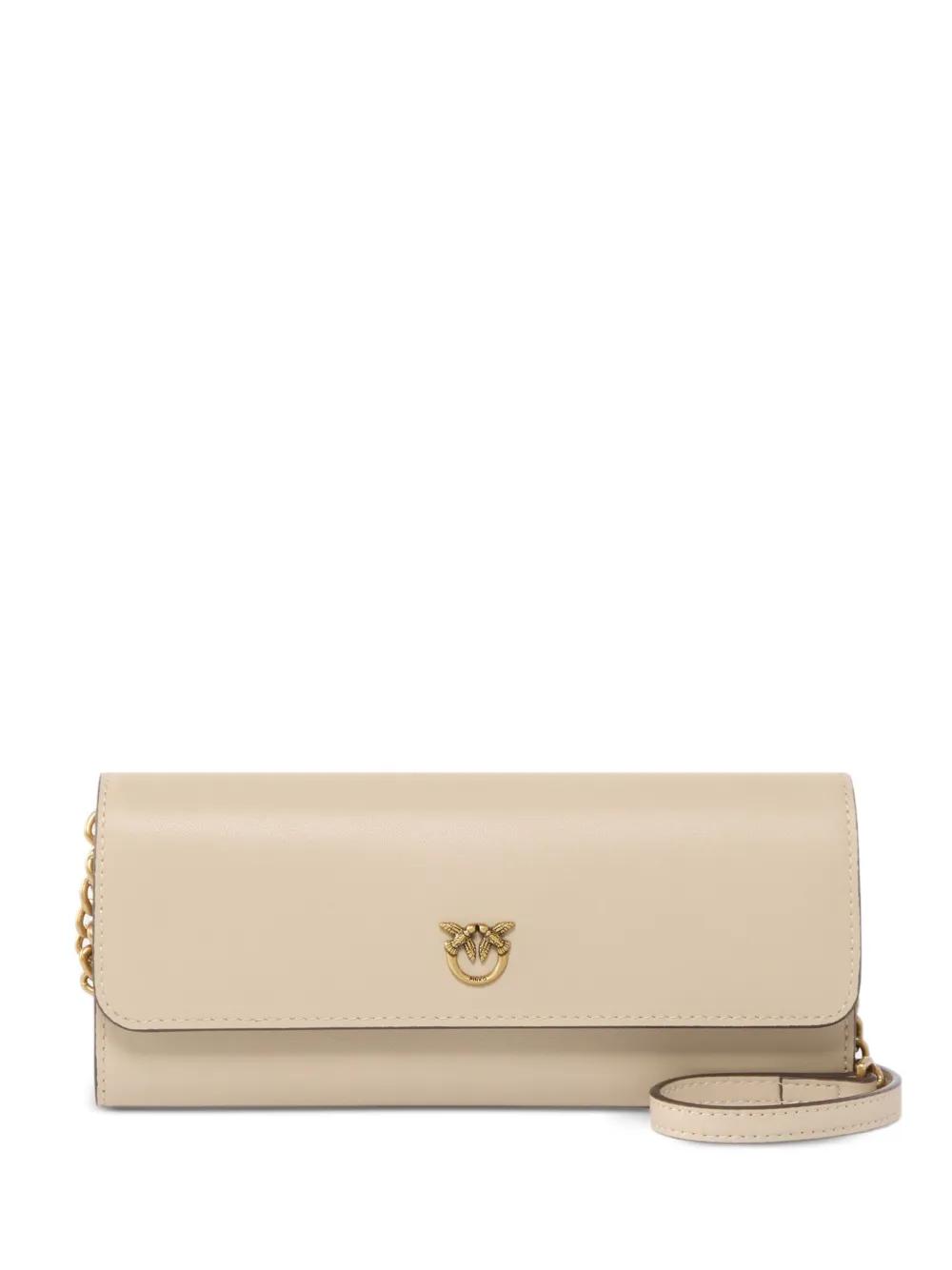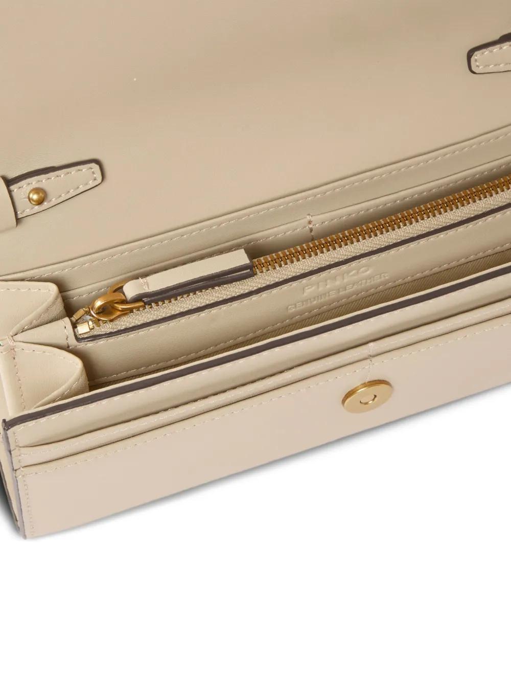 beige leather construction gold-tone logo zip fastening chain strap flap closure