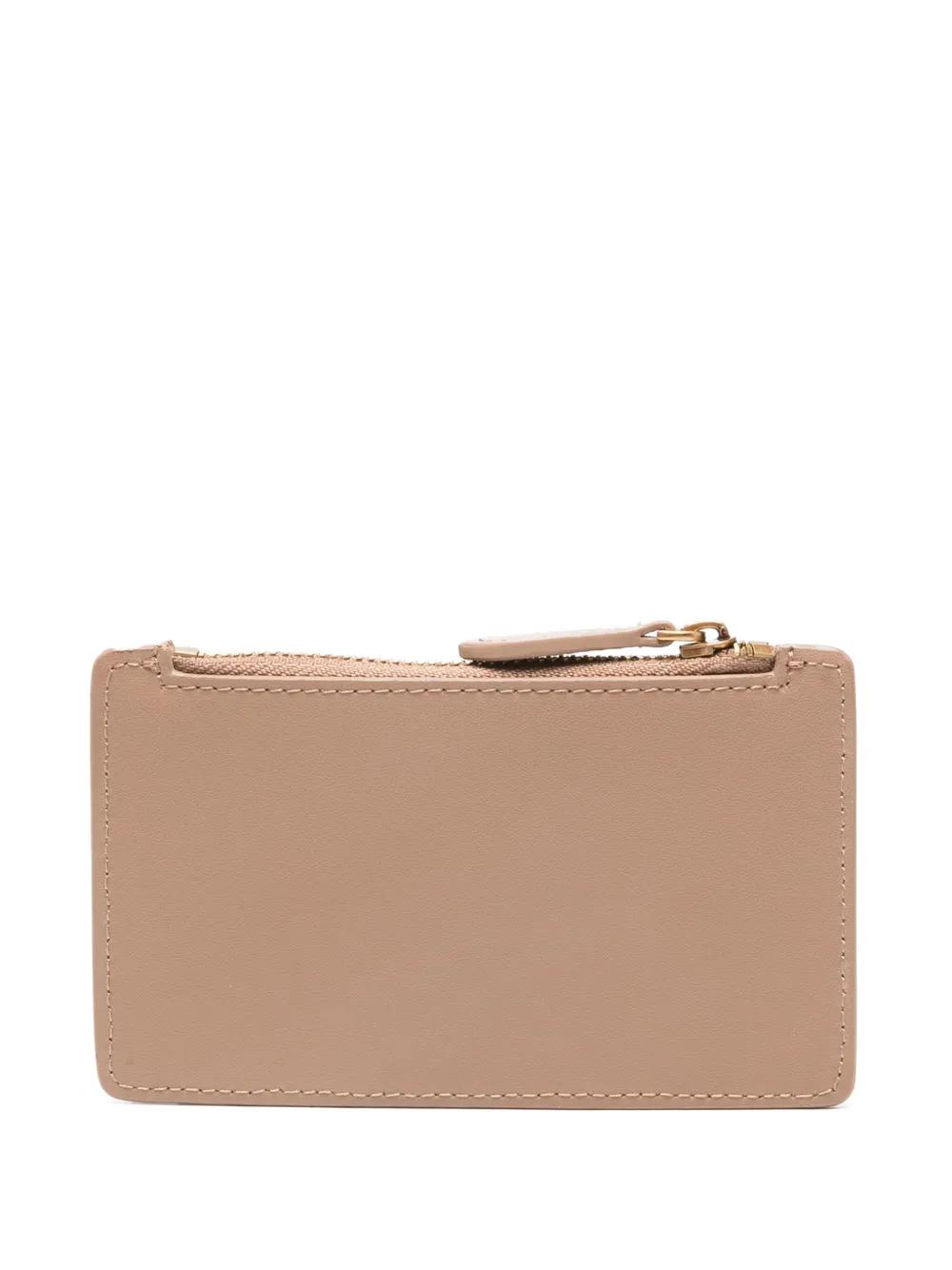 blush beige calf leather signature Love Birds logo internal logo patch rectangle shape top zip fastening card slots