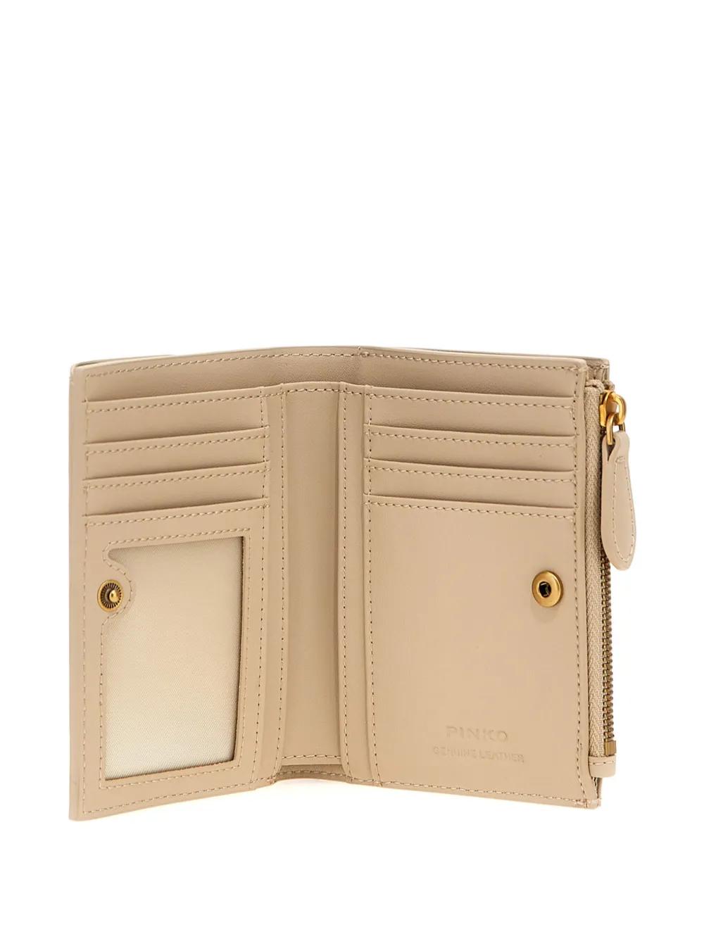 sand beige top zip fastening press-stud fastening gold-tone logo plaque internal card slots