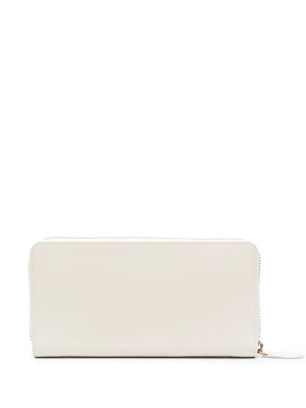 white calf leather gold-tone hardware logo plaque all-around zip fastening card slots note compartment