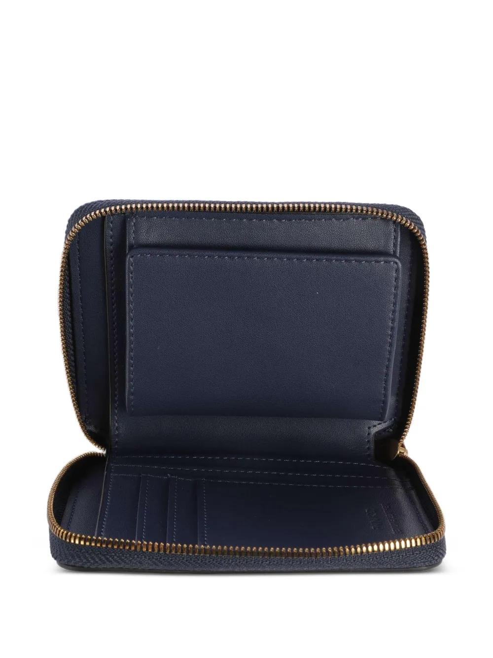 green leather gold-tone logo plaque all-around zip fastening card slots
