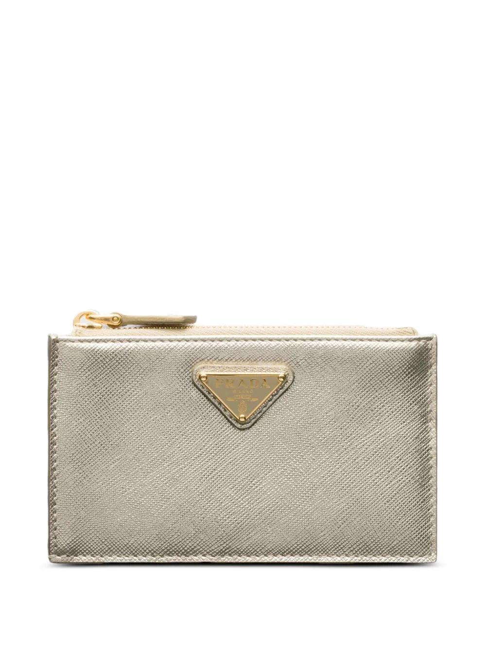 silver-tone metal logo zip closure card slots