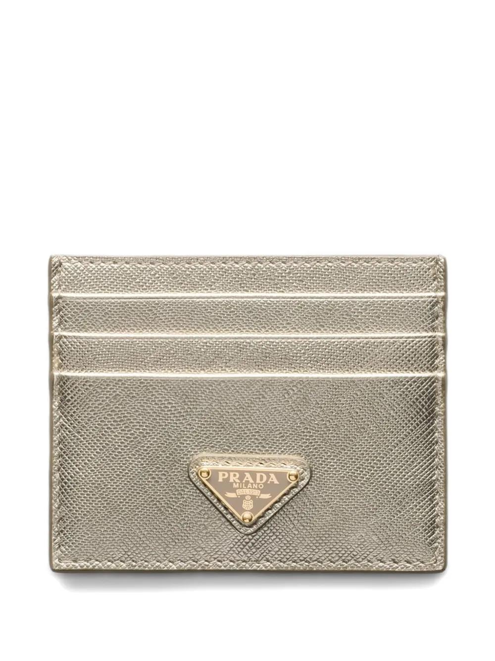 Prada triangle logo leather card holder - Gold