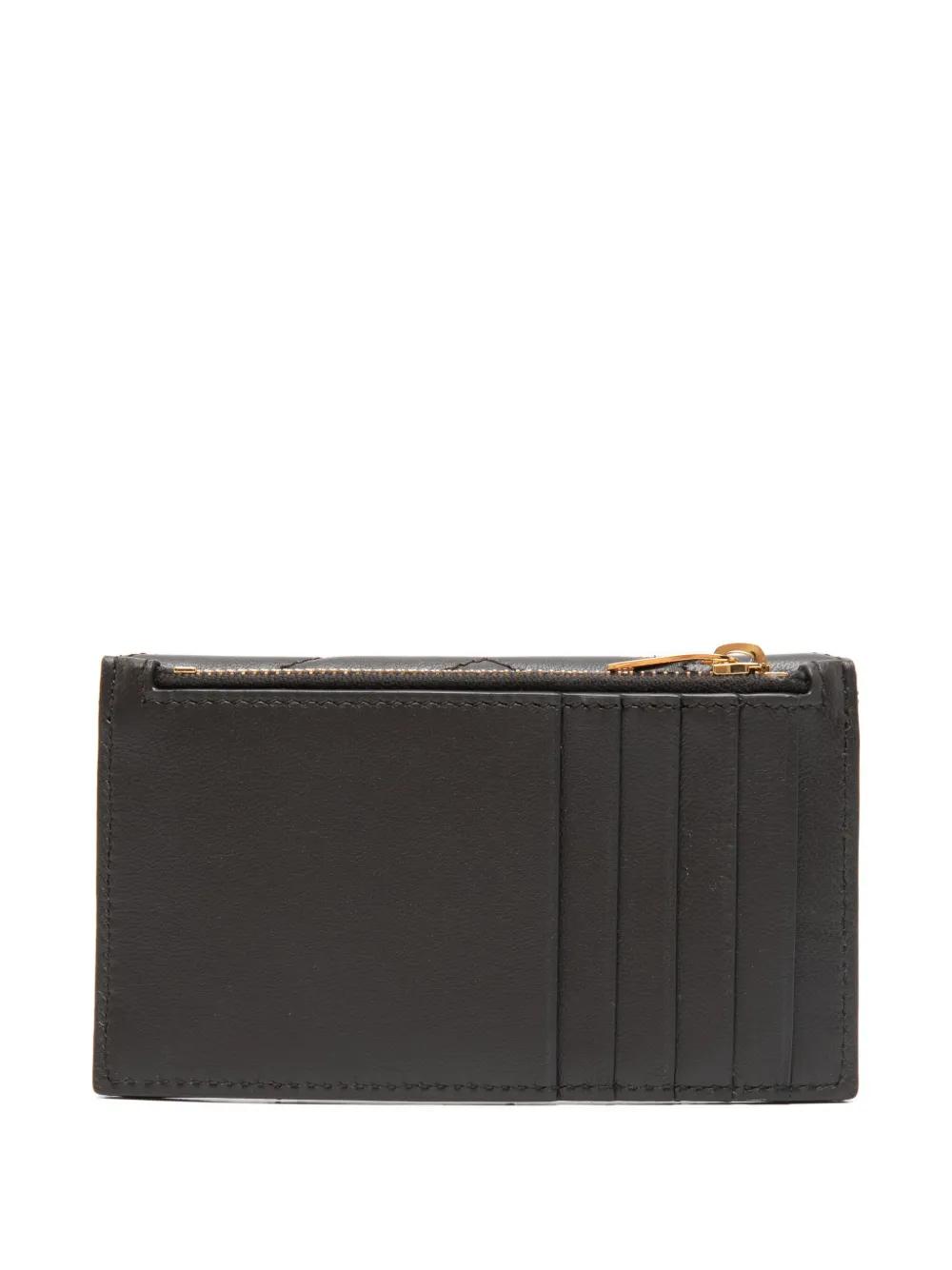dark grey matelassé gold-tone logo plaque zip fastening multiple card slots press-stud fastening